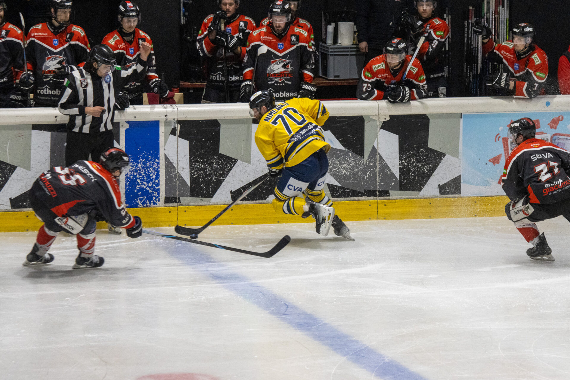 Nel secondo periodo il Caldaro aumenta la pressione e trova il pareggio a 27’ 10” con Alanne. Tra le due squadre c’è molta tensione e il ritmo della partita rimane altissimo, ma il risultato resta invariato fino alla seconda sirena.