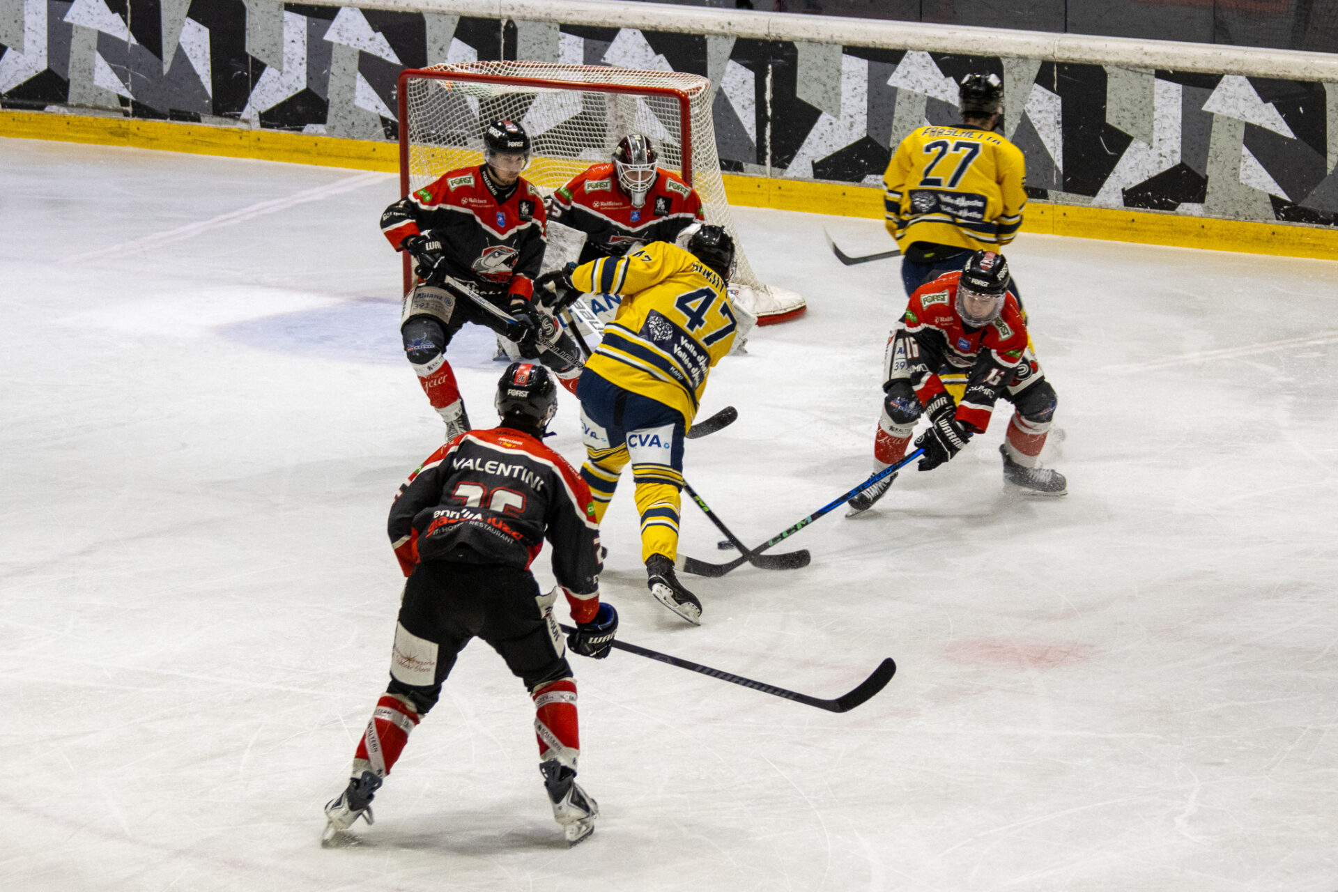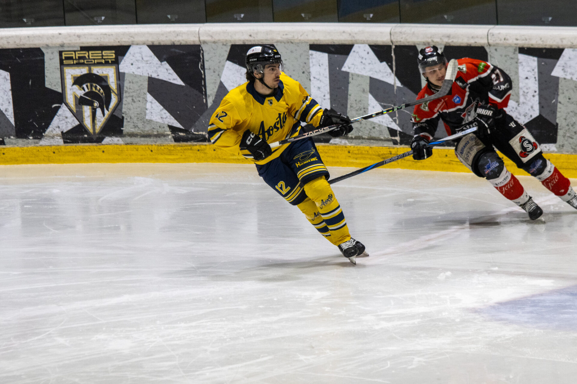 L’Aosta parte subito forte e trova il doppio vantaggio nei primi minuti. A 4’ 17” Mocellin sblocca il punteggio su assist di McNally e Fraschetta, mentre poco dopo, a 5’ 11”, Badoglio firma il 2-0 servito da Lysenko. Il Caldaro reagisce immediatamente e accorcia a 7’ 25” con Selva, riaprendo il match. Il primo periodo si chiude così sul 2-1 per i valdostani.