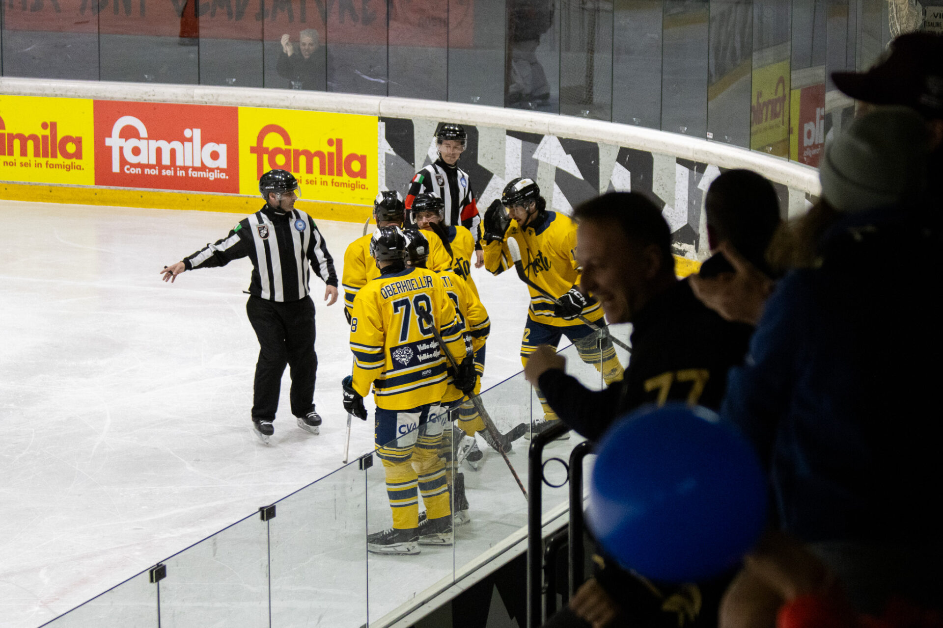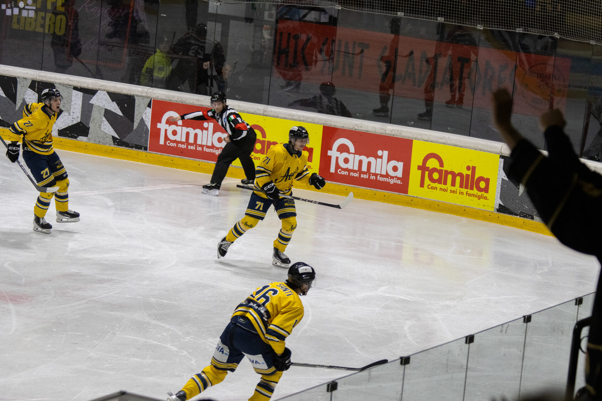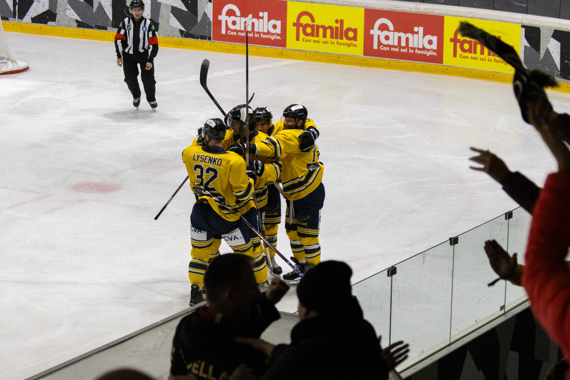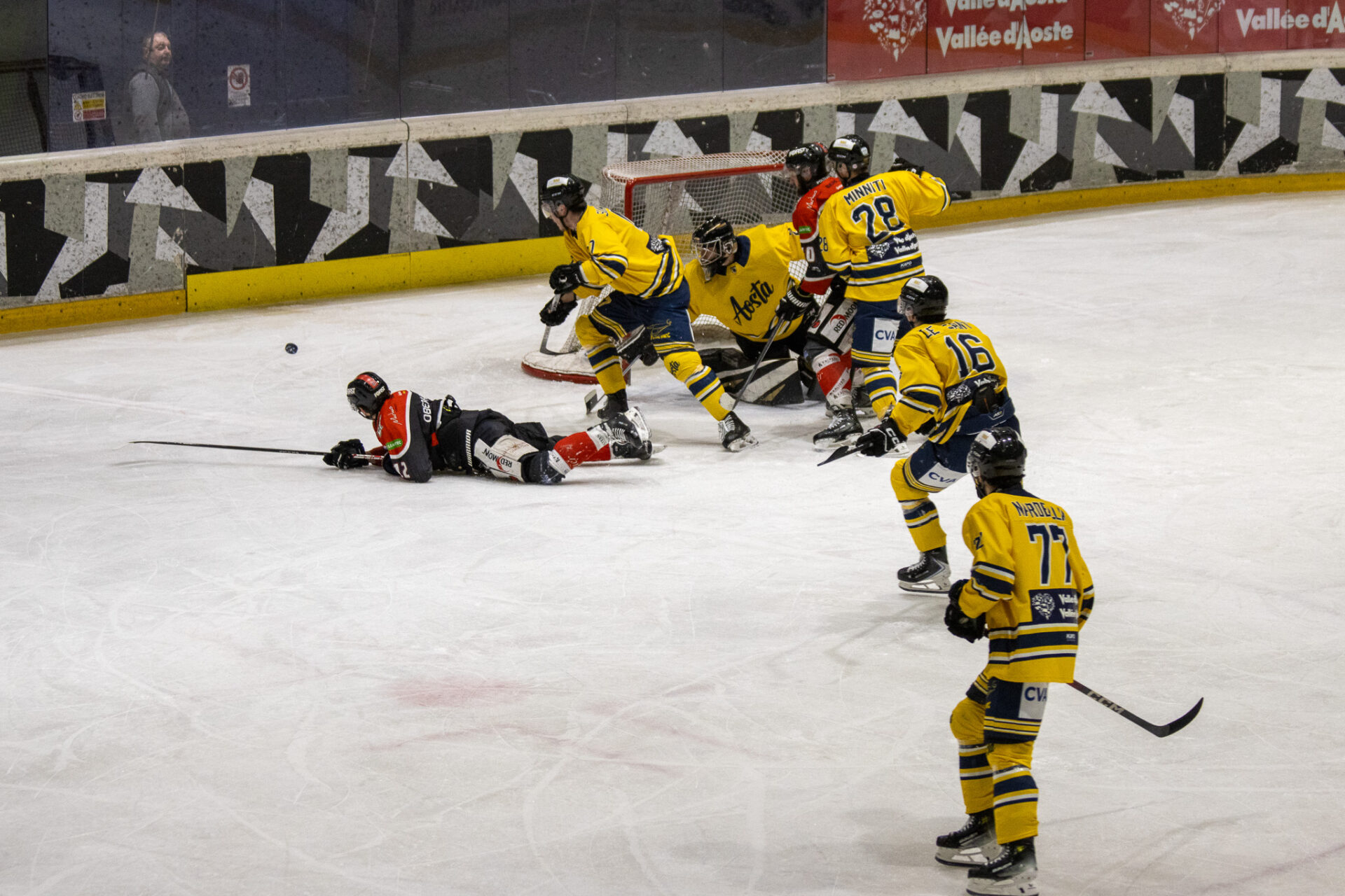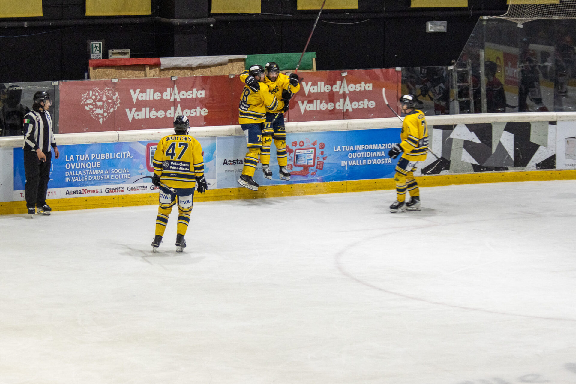 Nel finale l’Aosta completa il sorpasso. Al 56’16” Nardella trova il 4-3 su assist di Nimenko, ribaltando definitivamente la gara. Passano meno di sessanta secondi e lo stesso Nardella colpisce ancora: al 57’04”, servito da Fraschetta e McNally, firma il 5-3 che chiude i conti e fa partire la festa del Palaghiaccio.
