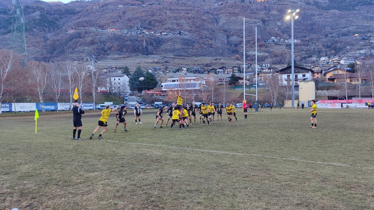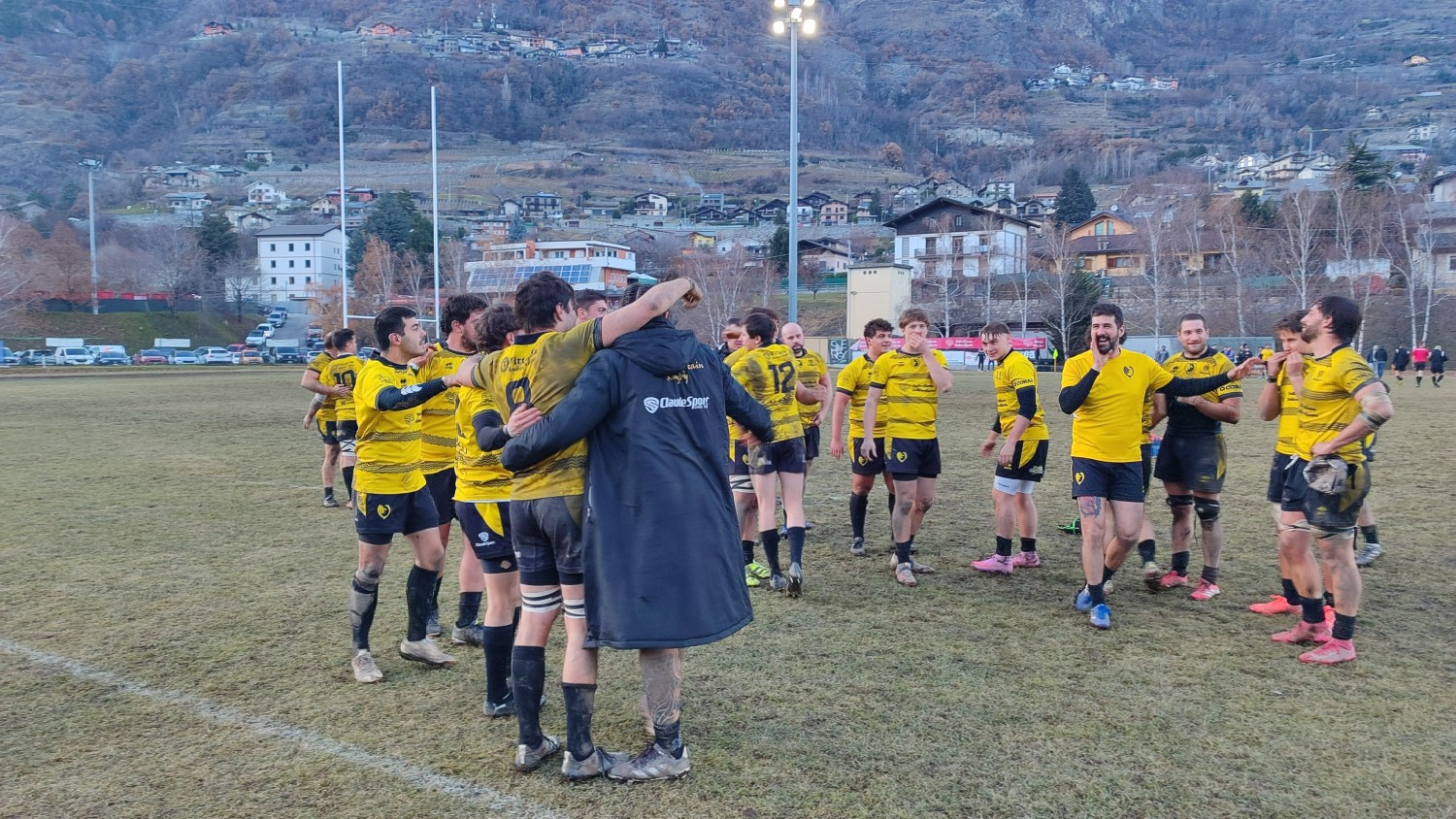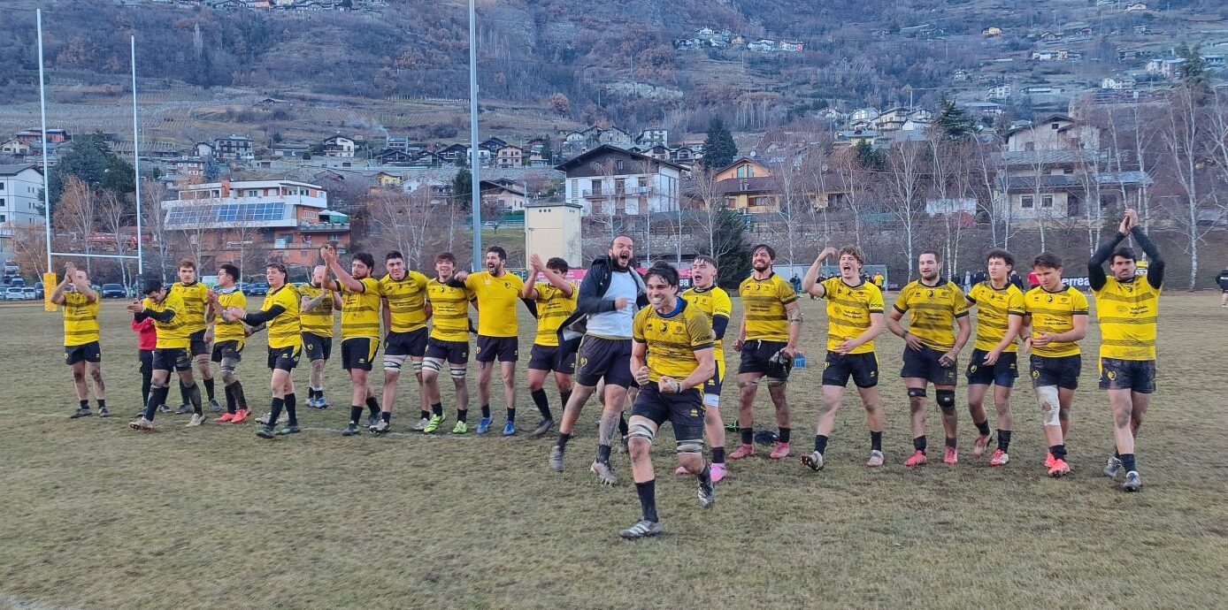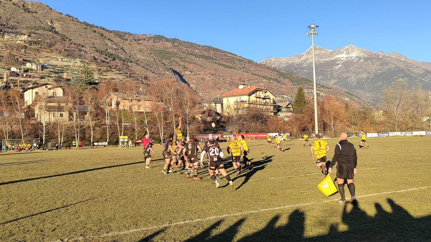 Vietato ai deboli di cuore. Dopo una promozione arrivata all’ultimo secondo, la prima storica vittoria dello Stade Valdôtain nella serie A di rugby non poteva certo arrivare in pantofole. Un silenzio di tomba ha accompagnato la trasformazione di Facundo Noval ben oltre il 40’ del secondo tempo, che ha sancito il 34-32 contro gli Amatori&Union Milano. Si sentivano le macchine passare sulla statale per dei secondi interminabili, prima che esplodesse una gioia fatta di urla ma anche di lacrime in una domenica – l’ultima del 2025 – ricca di prime volte. Lodi ad una squadra che, nonostante i tanti infortuni e le difficoltà, ha saputo attaccare, regalare bel gioco, subire, accusare il colpo e poi reagire al momento giusto.