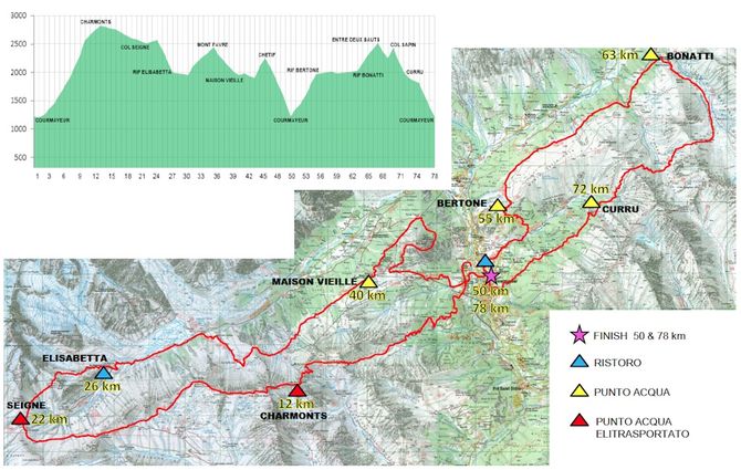 I percorsi saranno due con partenza e arrivo a Courmayeur: la prima, di 80 km, con un dislivello positivo positivo di 4.800 metri, da coprire in un tempo massimo di 22 ore; e la seconda, di 50 Km con un dislivello di 2.800 metri e tempo massimo di 13 ore.
