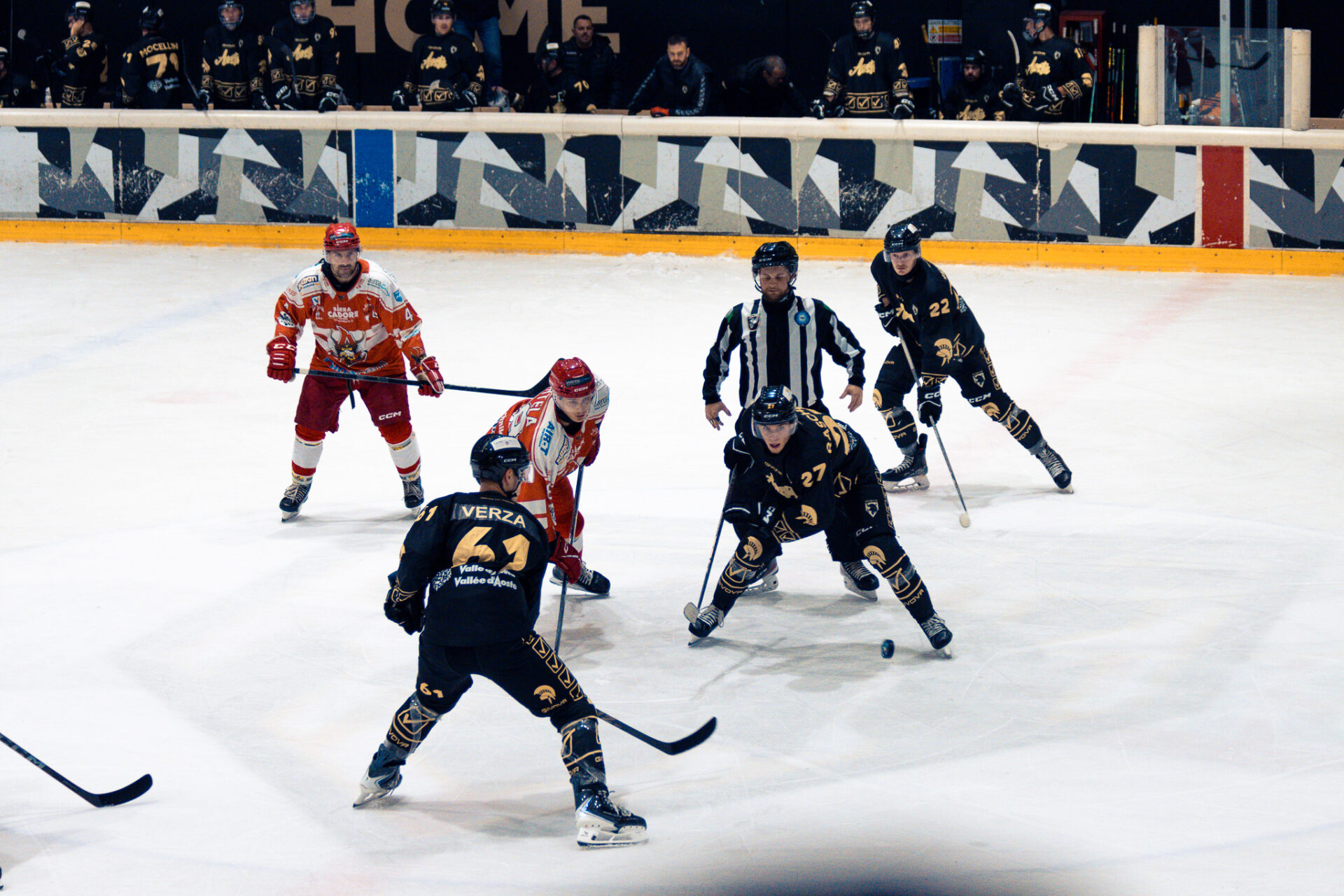Prima dell’ingaggio iniziale, il pubblico valdostano ha potuto applaudire Federica Brignone, ospite d’onore della serata, che ha dato ufficialmente il via alla partita tra gli applausi del Palaghiaccio. La campionessa azzurra ha salutato i tifosi e sostenuto la squadra valdostana fino alla fine.