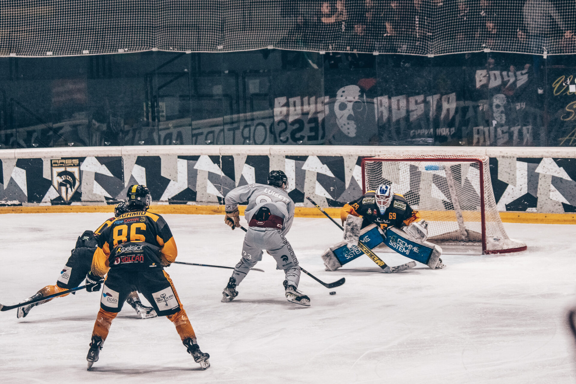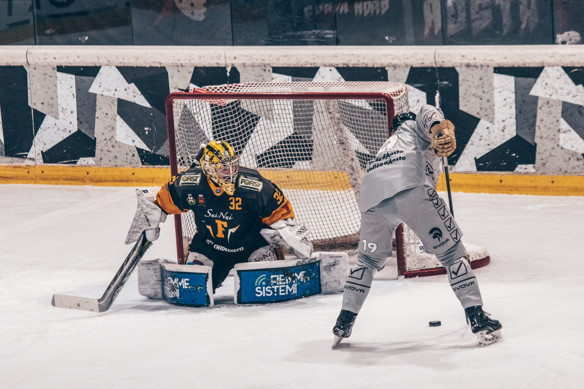 Il primo periodo si chiude sul 2-0, con l’Aosta capace di difendersi anche in inferiorità numerica dopo la penalità di Nardella per tripping al 3’29’’ e le due penalità per interference di De Toni e Gesumaria che ha lasciato i padroni di casa in quattro per due minuti.
