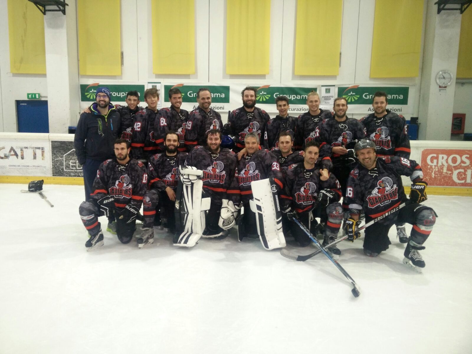 Formazione HC Aosta Gladiators B: Lorenzo Lamberti, Simone Cosentino, Sebastiano Madaschi, Jacopo De Luca, Matteo Giacometto, Luca Reale, Alessandro De Santi, Mattia Lenta, Loris Mattioli, Luca Cirina, Riccardo Muraro, Edoardo Muraro, Matteo Mazzocchi, Marco Cosentino, Giorgio Blanchet. Coach: Luca Giovinazzo.