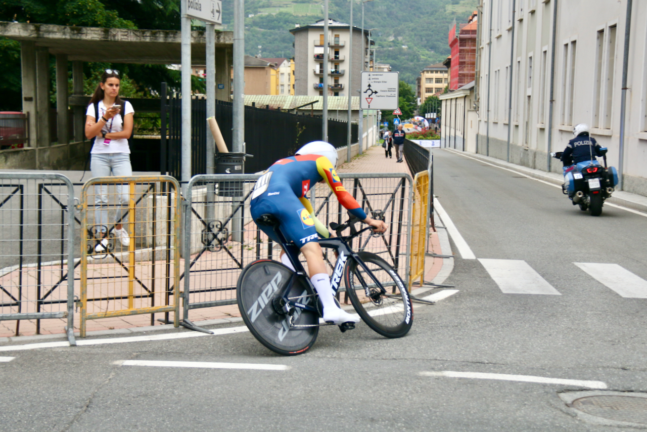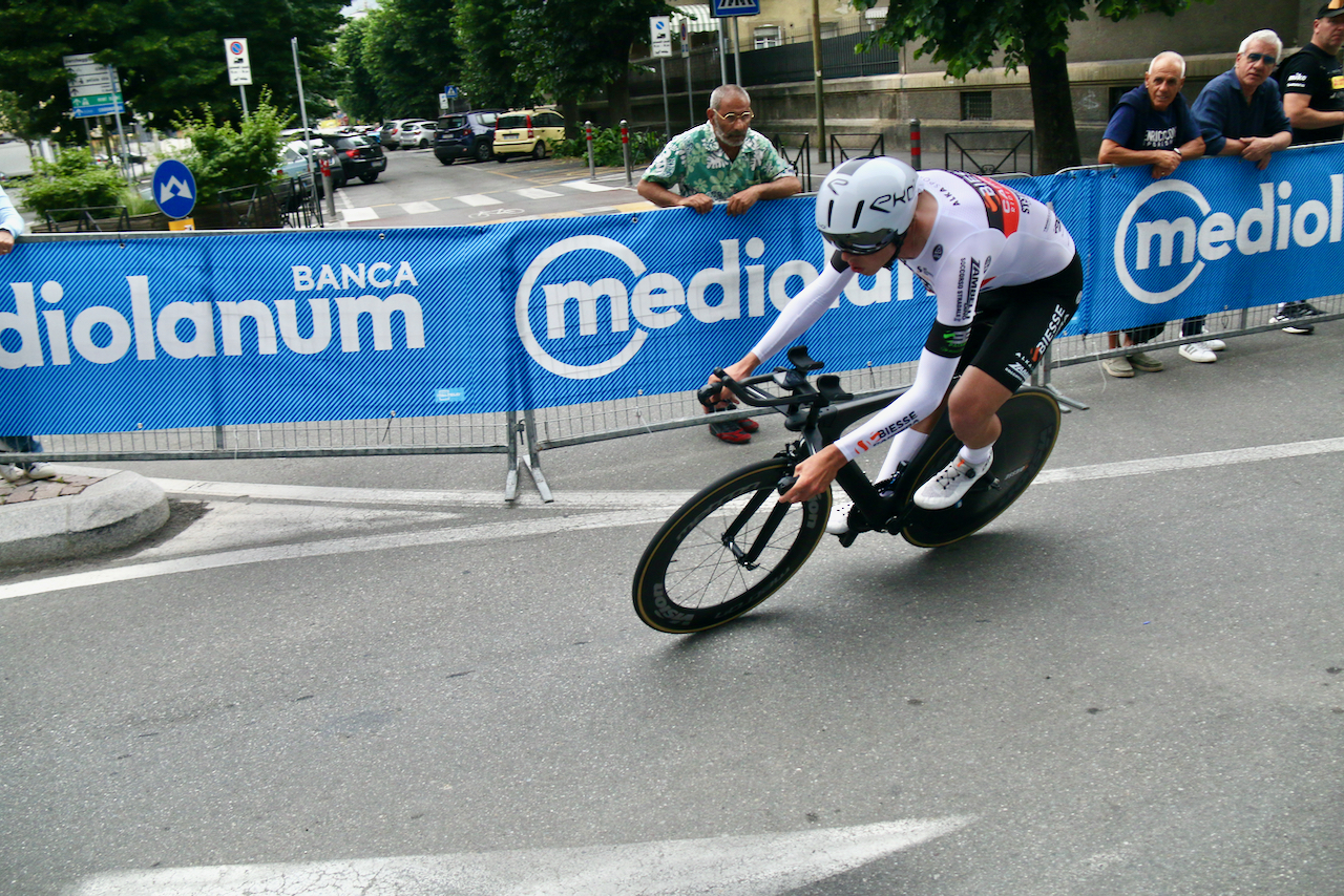 Jakob Söderqvist (Lidl-Trek Future Racing) ha vinto la cronometro individuale breve di 8.8 km di oggi ad Aosta e conquistato la prima Maglia Rosa di leader della classifica generale. Al secondo e terzo posto si sono classificati rispettivamente l’italiano Andrea Raccagni Noviero (Soudal Quick-Step Devo Team) a 6” e lo svizzero Fabian Weiss (Tudor Pro Cycling Team U23) a 9”.
