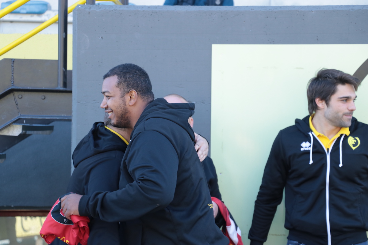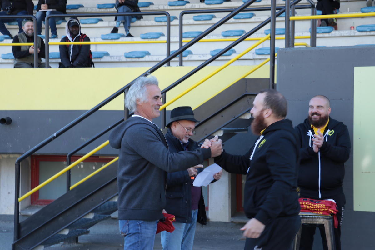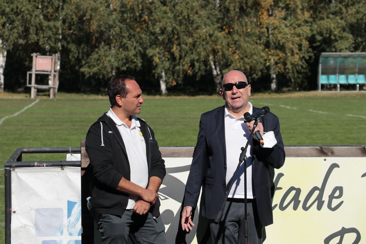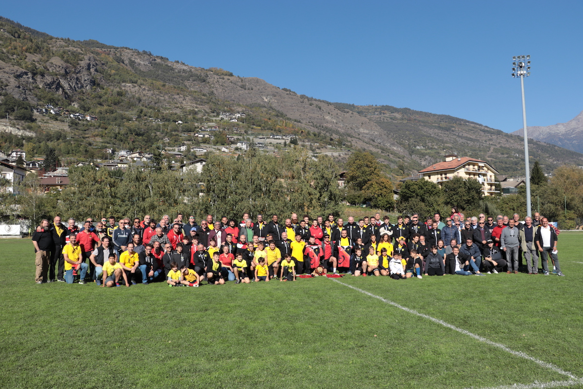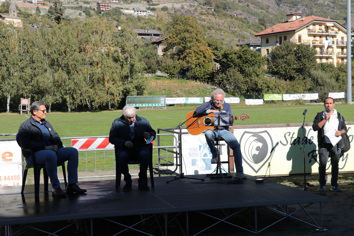 Prima della partita, la grande festa. Una festa in “famiglia”, se  diverse centinaia di persone possono considerarsi semplicemente una famiglia. Dagli Old dello Stade, con la loro trionfale partita contro i “pari età” dell’Alessandria, sconfitti per 6 mete a 2 e con sprazzi di gioco e forma fisica invidiabili anche dai più giovani, alla Propaganda, scesa in campo mentre veniva presentato il libro di Roberto Macini “Non sono bello ma placco”. E poi tante persone intervenute per dare traccia del loro supporto alla società giallonera, con l’invito del presidente Fida: “Al campo di Aosta ho lasciato il cuore, mi emoziono ogni volta che ci passo davanti. Ma dovevamo pensare in grande, e Sarre è il posto giusto: qui possiamo fare tornei, ritiri, centri estivi. Questo è il risultato di tanti sacrifici: venite tutti al campo, siamo una squadra”.