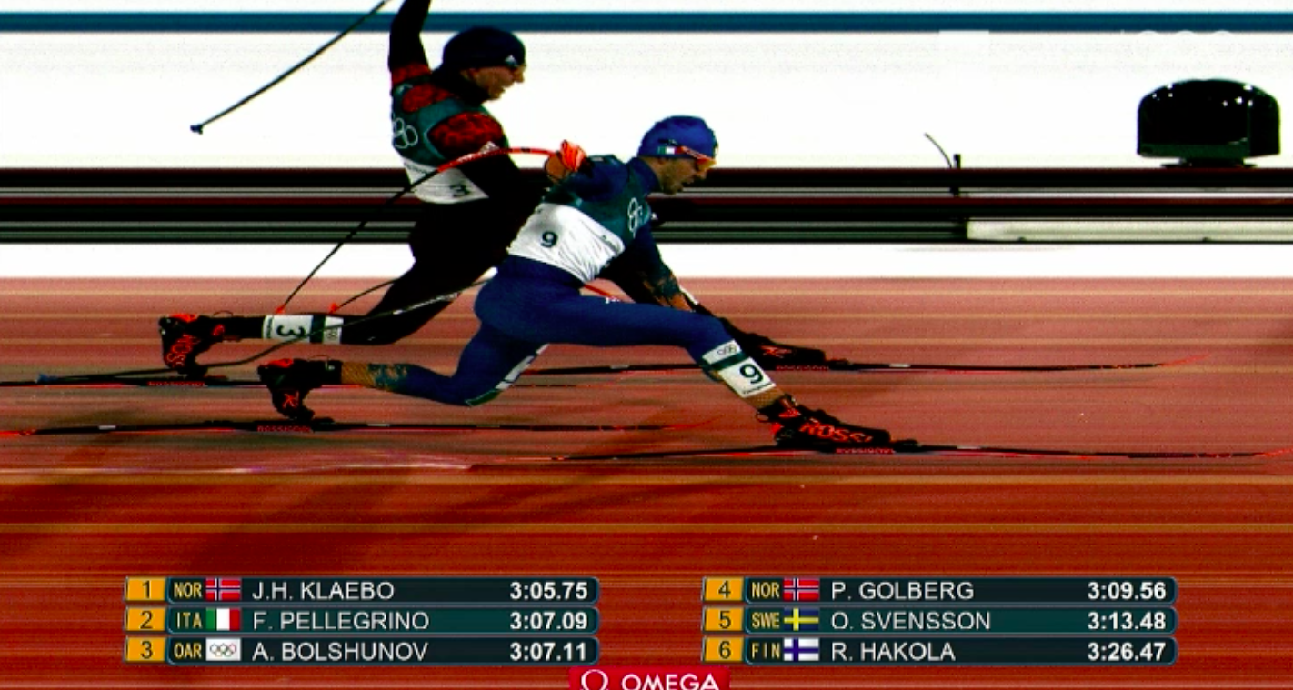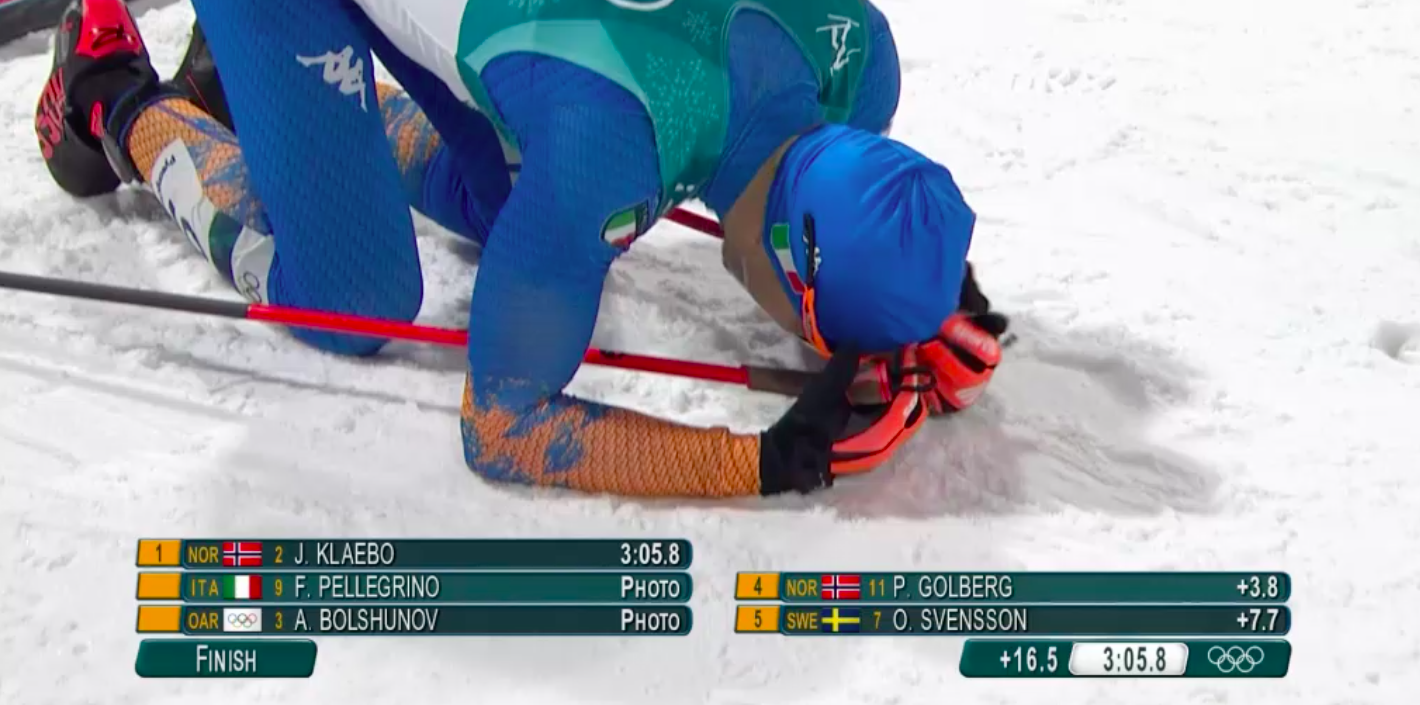 A vincere è stato Klaebo, ma Pellegrino c’era, ed in volata finale ha piazzato la zampata del campione, anticipando al photofinish per due centesimi il russo Bolshunov. Grande rimonta di Chicco, rimasto agganciato al treno dei primi tre per poi dare tutto in salita e nel rettilineo finale.