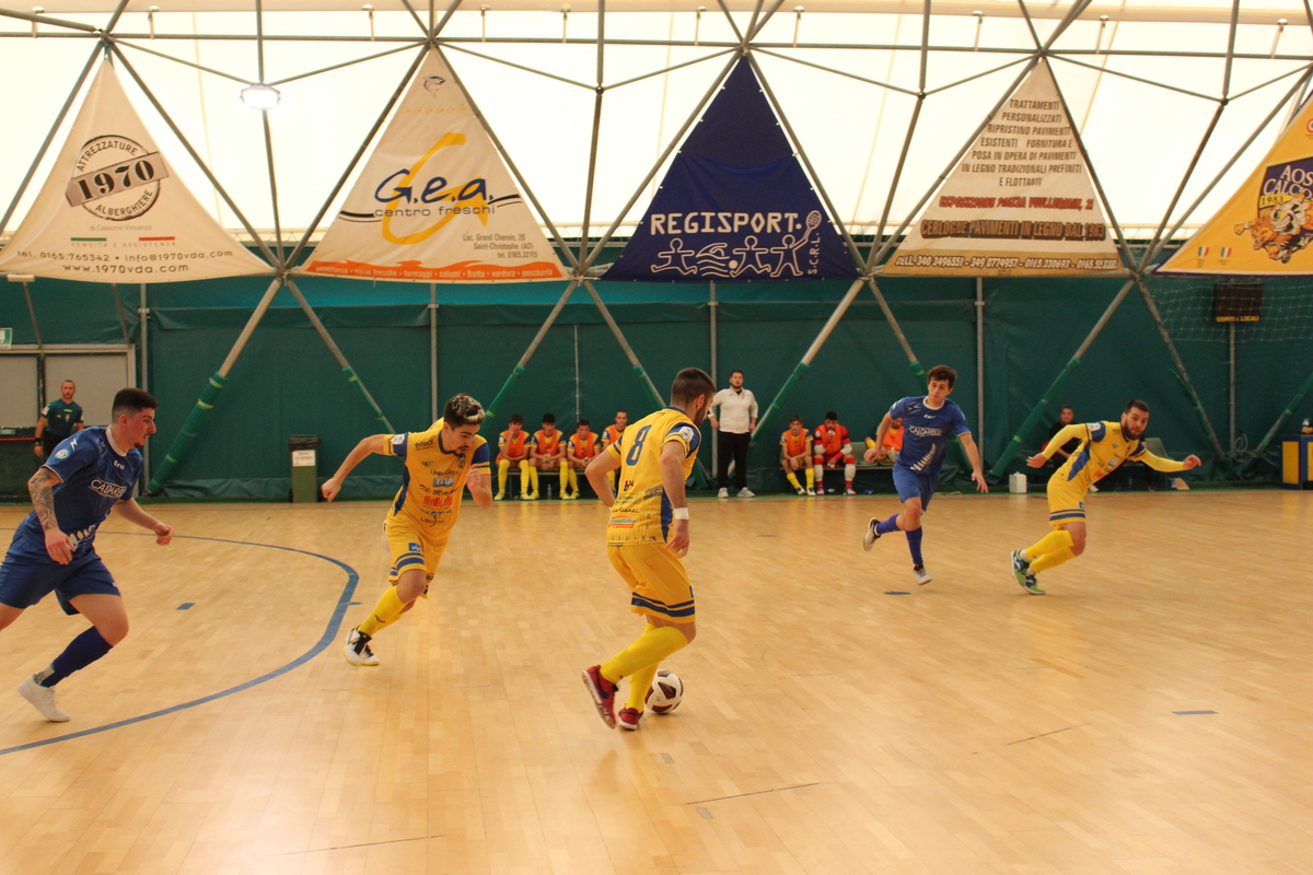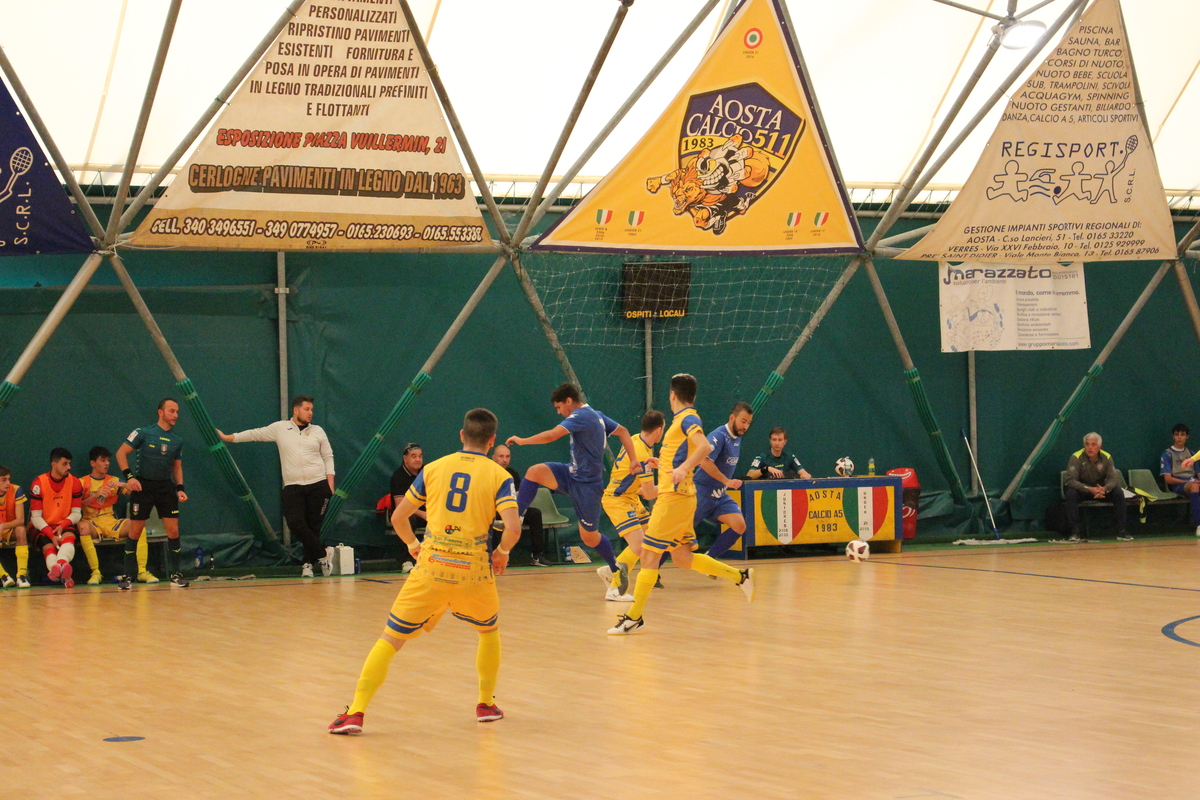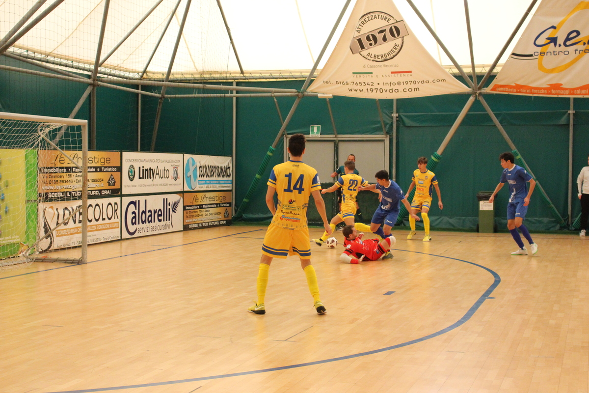 Nonostante un secondo tempo caratterizzato da una grande aggressività da parte dei padroni di casa, sia in fatto di tiri che di falli, il risultato è rimasto sul pari fino a 28 secondi dalla fine della partita. A smuovere il punteggio ci ha pensato Tato, del Fossano, che a seguito di un’azione molto controversa ha segnato il gol decisivo. A rendere “giallissimo” questo secondo tempo sono state 5 ammonizioni, 4 delle quali ai danni dell’Aosta Calcio 511 e 1 ai danni dei Gialloblu.