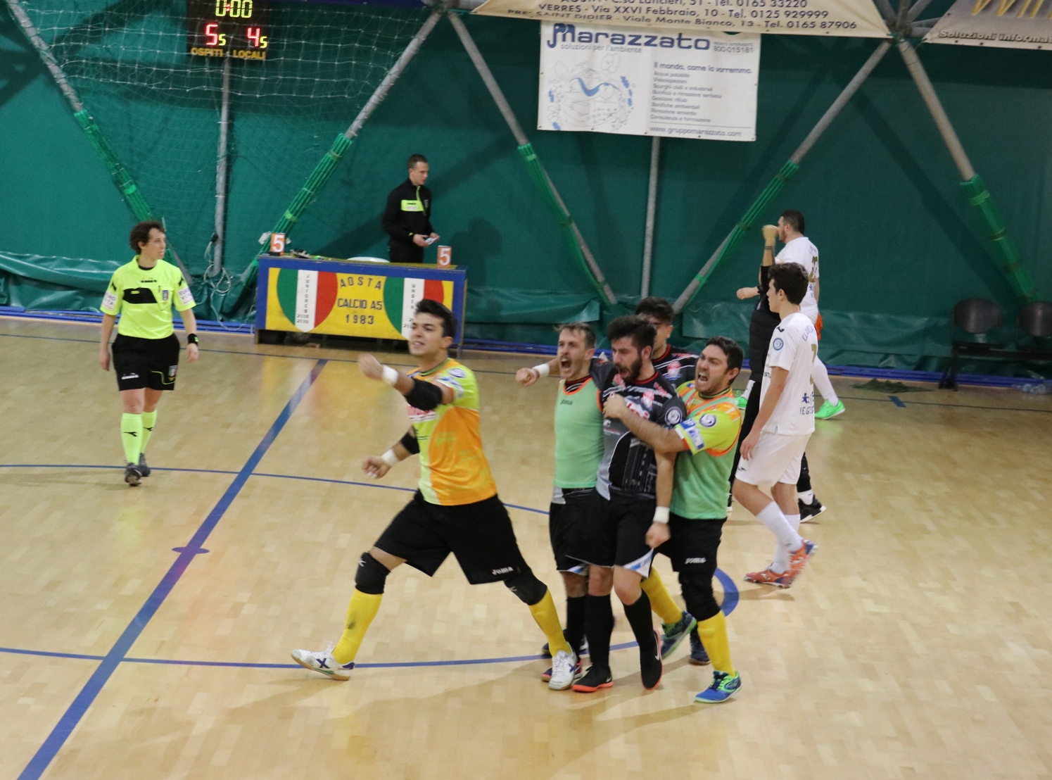 Nella ripresa Siqueira dà il cambio a Belmonte ed è subito decisivo al 3’. L’Aosta ha una grande chance per riprovare a chiudere l’incontro quando, al 6’, Tutilo “para” un tiro di Rosa e riceve la seconda ammonizione. Clamorosamente, però, è il Rhibo in inferiorità numerica a trovare il gol del pareggio, ancora con Rahimi in contropiede. Bastano 20 secondi a Luca Iurmanò per ristabilire le gerarchie, trovando il 4-3 appostato sulla linea di porta. L’Aosta però non riesce a combinare molto, mancano le idee e Casalone rimane pressoché disoccupato. Pesa, soprattutto, il non essere riusciti ad arrivare al tiro libero nonostante il Fossano avesse esaurito il bonus del quinto fallo già dopo cinque minuti. E così, dopo l’ennesima palla persa, Dotto ritrova il pareggio lanciandosi sul secondo palo al 15’. I gialloblù raggiungono il quinto fallo a due minuti dal termine, ma è negli ultimi trenta secondi che si compie il patatrac: rosso ad Angiulli per un’inutile doppia ammonizione e, a 18” dal termine, Rahimi sfrutta la superiorità numerica siglando il gol vittoria e la sua tripletta personale con un tiro secco sul secondo palo.