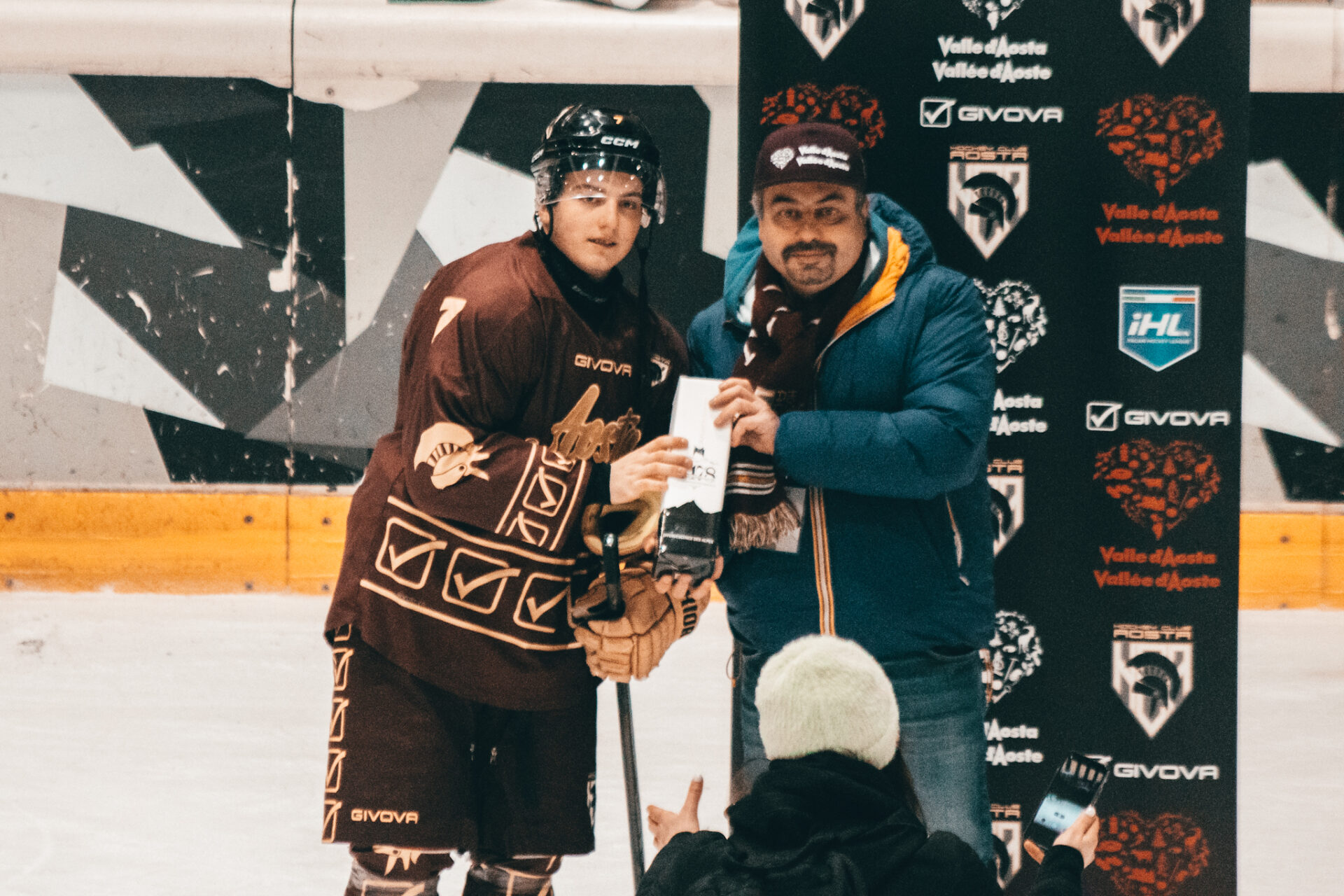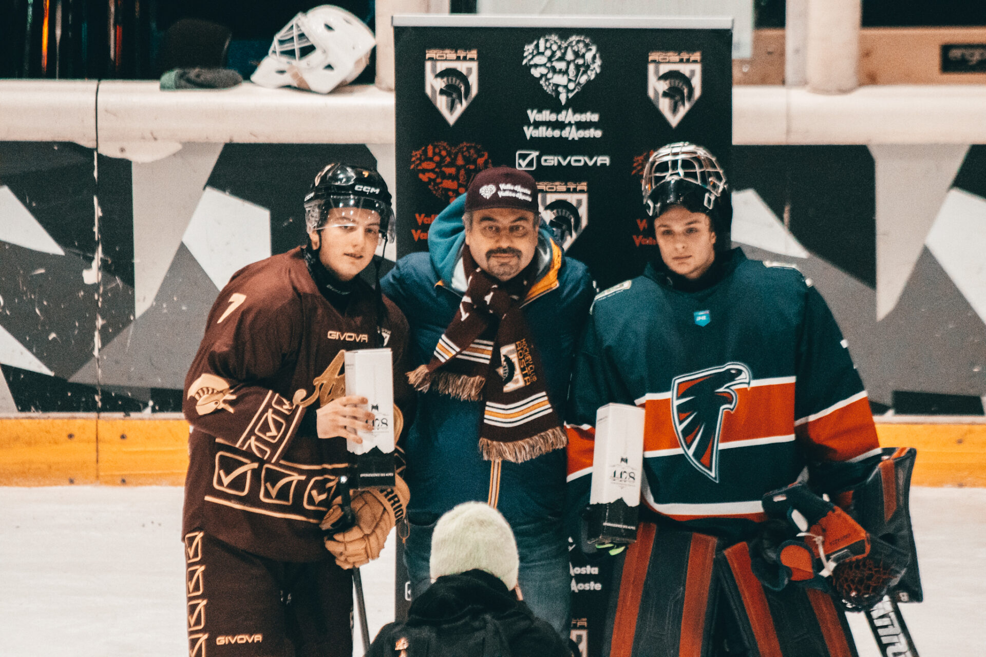 A fine partita, i premi individuali sono stati consegnati da Andrea Costa, rappresentante de La Crotta di Vegneron di Chambave. Per il Bressanone il migliore in campo è stato il portiere Clarence Costazza, mentre per l’Aosta il premio da MVP è andato a Patrick Igor Timpone.