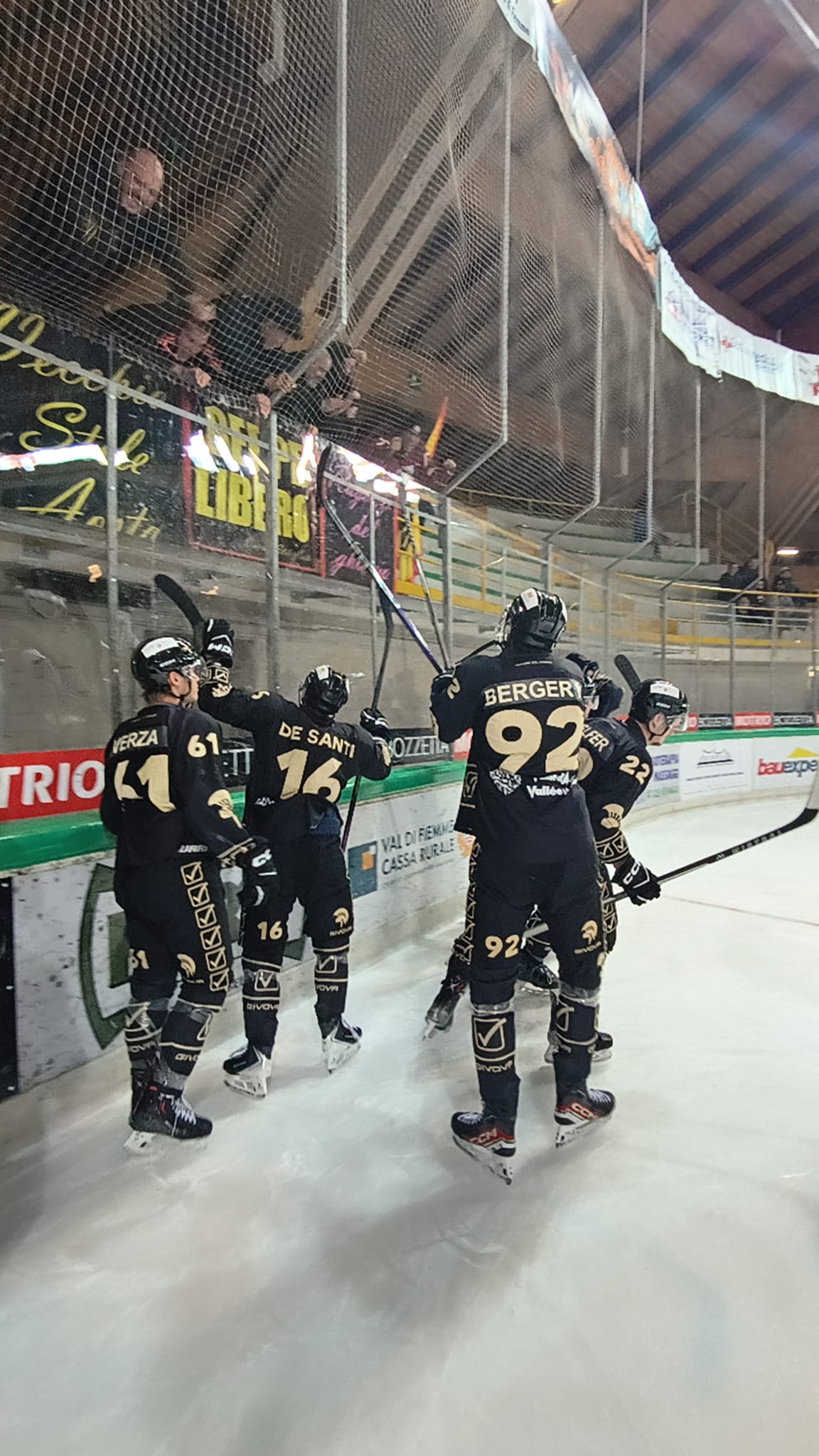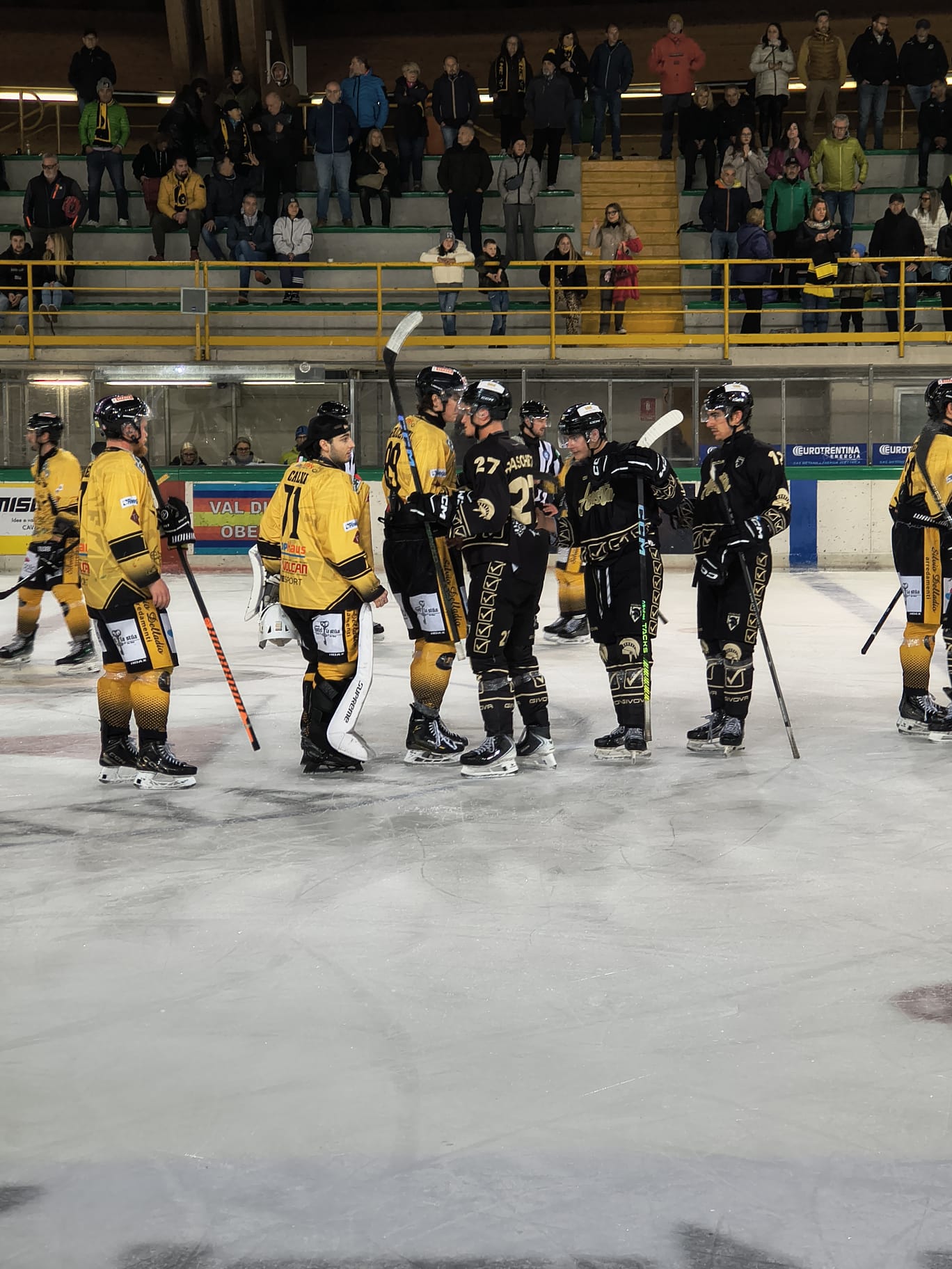 Ultimi minuti concitati con i padroni di casa che tolgono il portiere per tentare il tutto per tutto ma il risultato finale vede l’Aosta vincere sul ghiaccio di Cavalese per 4 a 3.