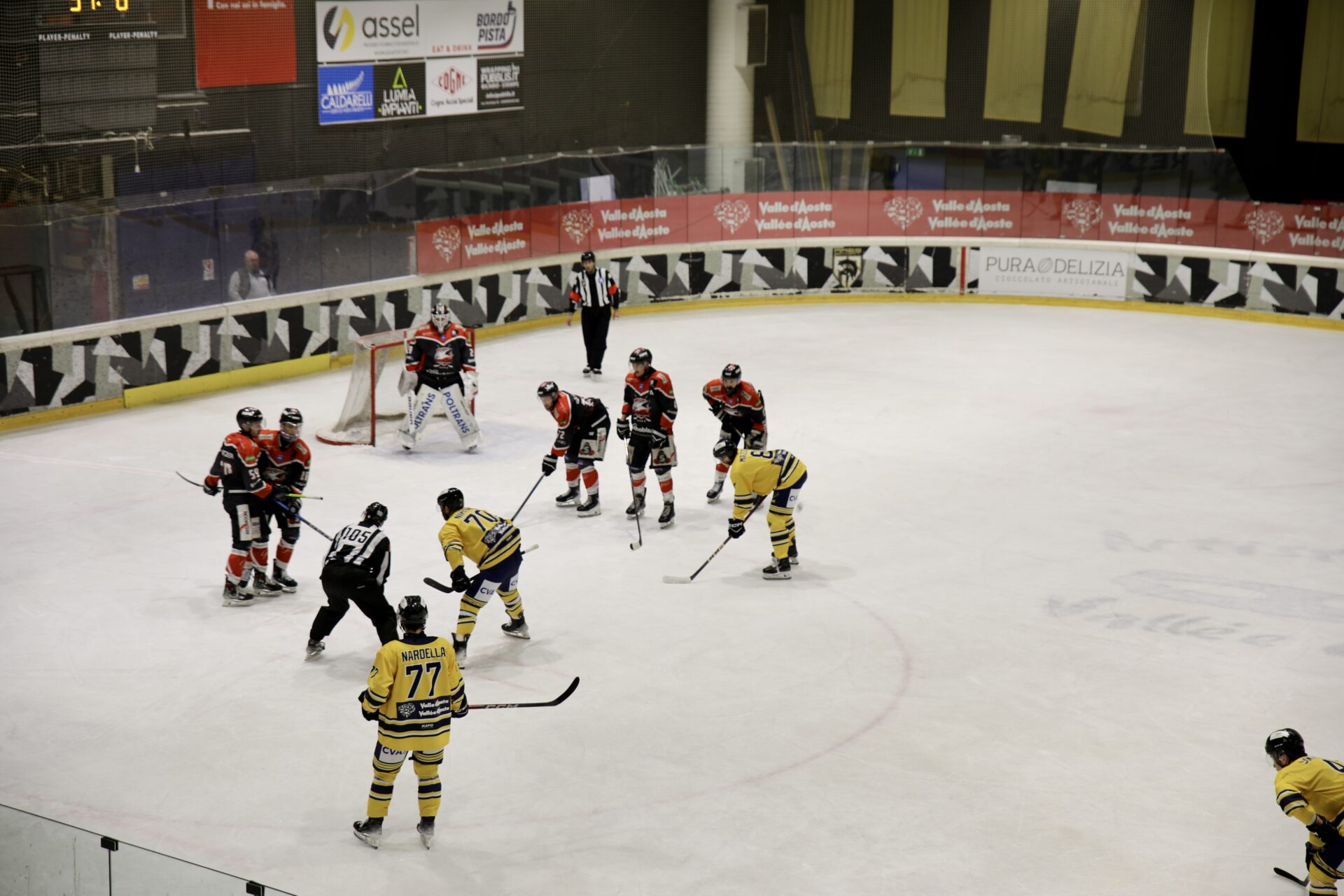 Nel terzo periodo la partita resta bloccata a lungo, con il Caldaro che prova a gestire il vantaggio e Perla attento a neutralizzare le conclusioni ospiti. Con il passare dei minuti l’Aosta cresce e trova la svolta nel finale. Al 56’01” è ancora Nardella a trovare il pareggio con un tiro preciso con l’assist di Badoglio e Nimenko.