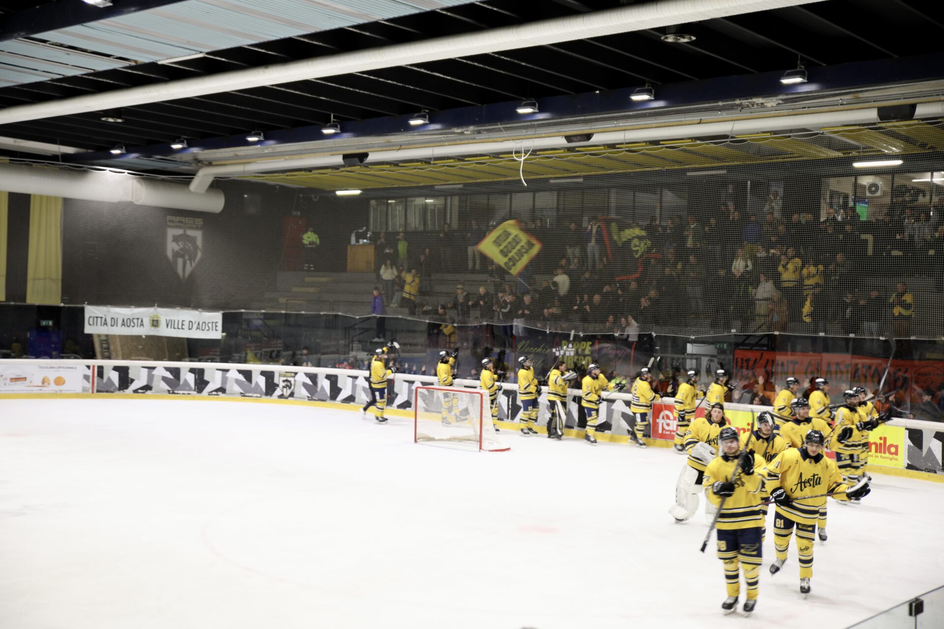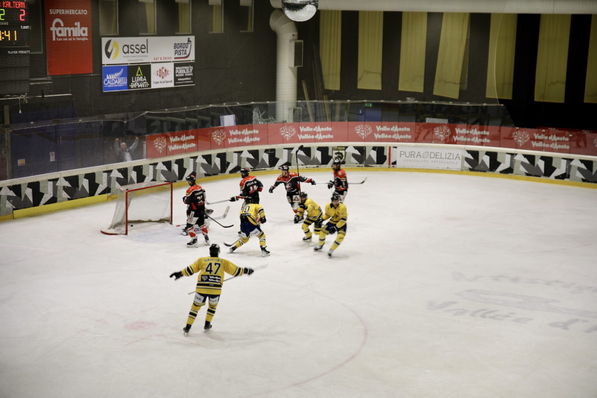 Il Caldaro tenta il tutto per tutto togliendo il portiere negli ultimi 3 minuti, ma l’Aosta controlla e chiude la partita. Fraschetta firma il 4-2 a porta vuota al 58’36” e Nardella realizza il definitivo 5-2 al 59’03”, completando la rimonta e facendo esplodere i 700 tifosi al Palaghiaccio di Aosta.