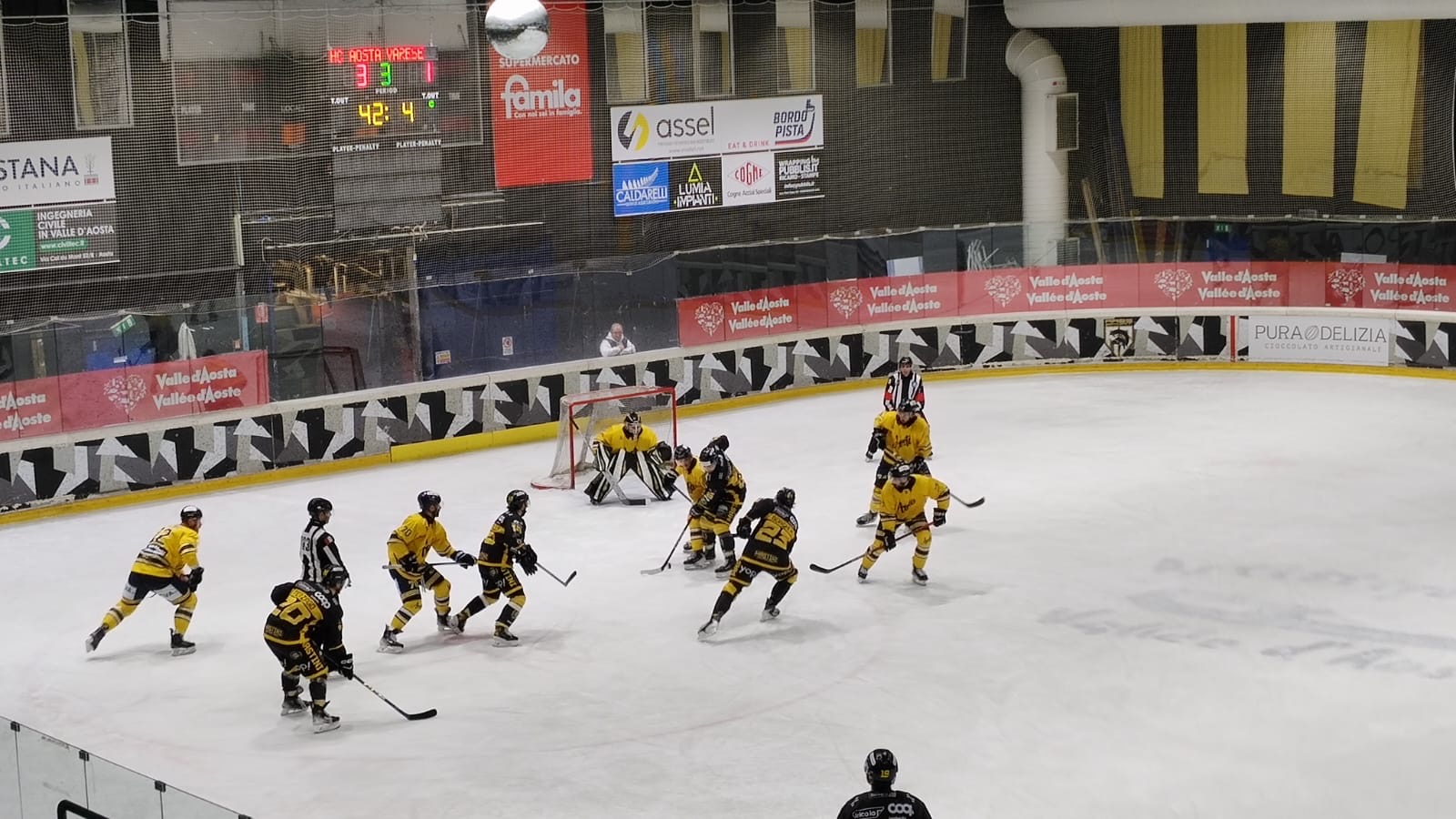 Decisivo tra i pali Perla, autore di numerosi interventi che permettono all’Aosta di difendere il vantaggio fino alla sirena finale, nonostante l’assalto conclusivo del Varese con il portiere tolto negli ultimi minuti.