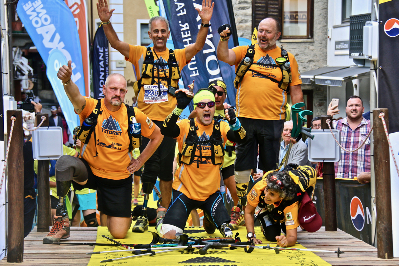 Ce l’hanno fatta. Nonostante il caldo, la pioggia e ovviamente lo sforzo immane di affrontare il percorso con una gamba sola, i cinque eroi partiti da Gressoney martedì sera con il sogno di concludere il Tot Dret – 130km e 10mila metri di dislivello positivo – ma soprattutto di combattere i pregiudizi sulla disabilità, sono arrivati a Courmayeur appena dopo le ore 16 di oggi.