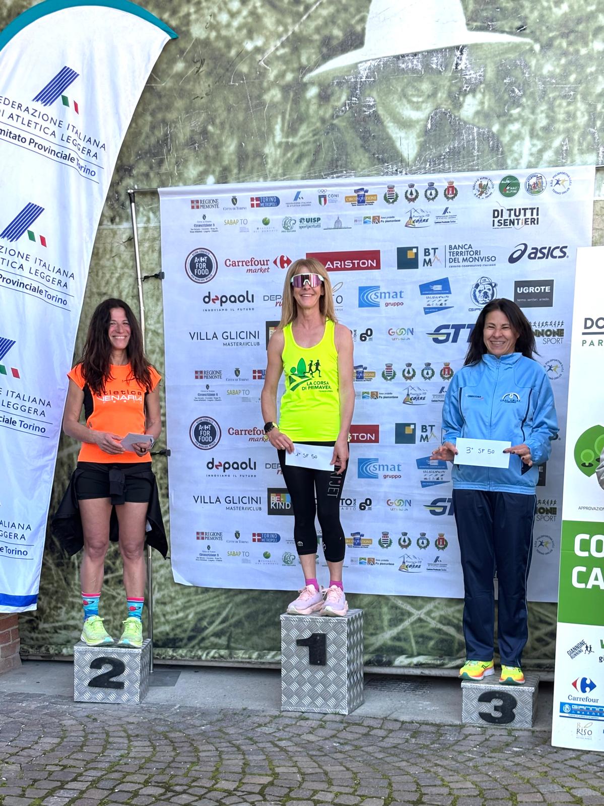 Risultati brillanti per le atlete valdostane nella 2ª Corsa di Primavera a Torino, su un tracciato di 9,5 km. Sabina Marquet (Atl. Cogne Aosta) è 3ª donna in 40’55”, seguita da Elisa Vitton Mea (Atl. Cogne Aosta), 7ª donna in 42’09” e 2ª SF45. Bene anche Alessandra Vayr Piova (Pol. Sant’Orso Aosta), 8ª donna in 42’40”, e Alessandra Joly (Atl. Cogne Aosta), 10ª donna in 43’20”, 1ª SF50.