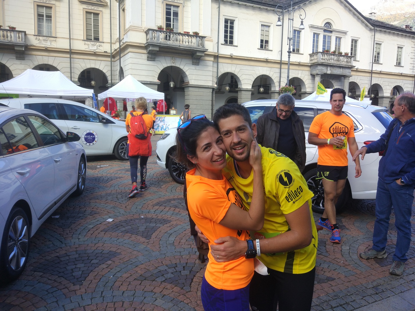 Matteo Arena ha alle spalle qualche martze a pià e una mezza maratona, ma i 21 km erano stati il suo limite massimo. Per fare questi 60 ha studiato una strategia: “La gara è andata abbastanza come previsto. Ho fatto sabato i primi 30 km in circa 3 ore, poi la notte ho dormito, anche se in condizioni non propriamente ottimali, su un materassino sgonfio in un ufficio. Per regolamento, non potevo lasciare piazza Chanoux. Stamattina alle 6 non ho sentito la sveglia, quindi sono ripartito alle 9. A quest'ora avrei già finito…”. Il risveglio è stato meno traumatico del previsto e, anche grazie ai massaggi ricevuti ieri sera, le gambe giravano bene anche domenica mattina. “Poi verso il 20° km [cioè il 50° totale, ndr] ho avuto un po' un crollo psicologico, di cui siete stati testimoni anche voi, e da cui sono uscito con un tè caldo che mi ha dato Emile e con una birra. Però sto bene, non credo di avere particolari problemi fisici. È stato bello avere il sostegno di tutti, gli amici, i compagni del team Scott, la gente in piazza, anche se ora non vedo l'ora di tornare da mia figlia Matilde”.