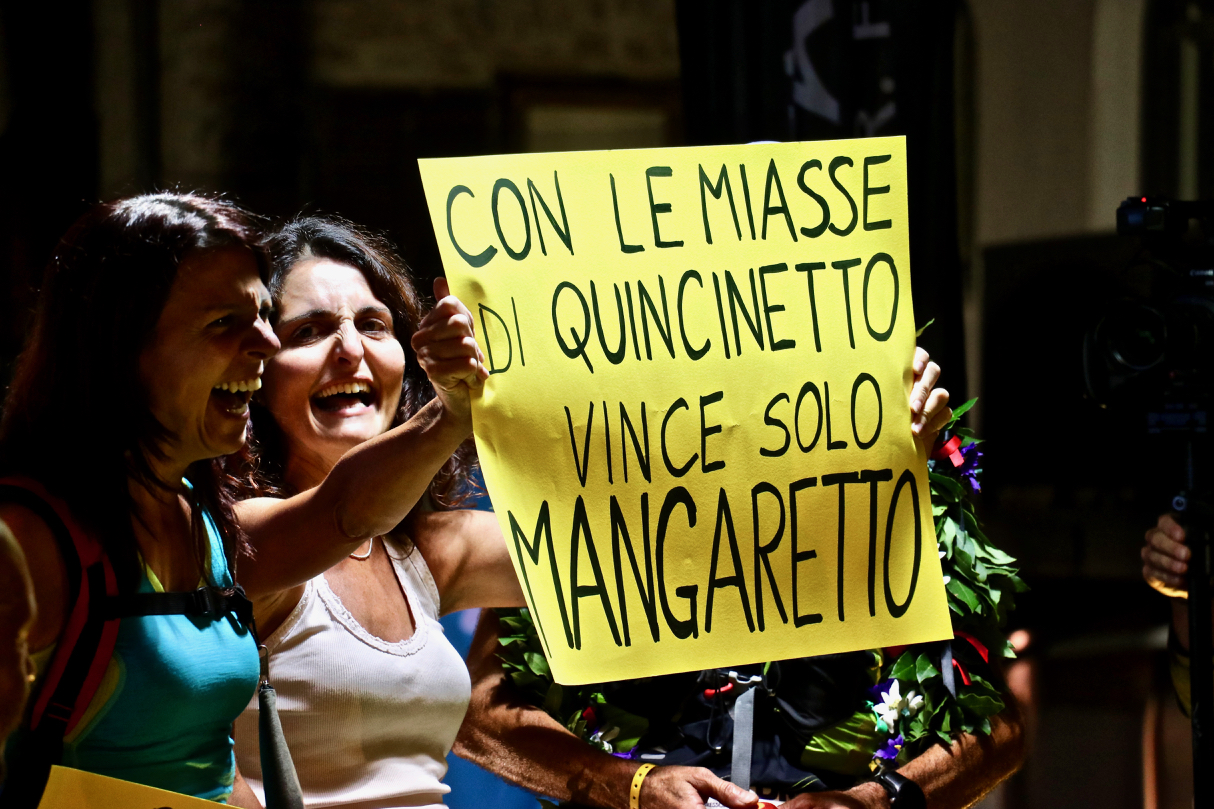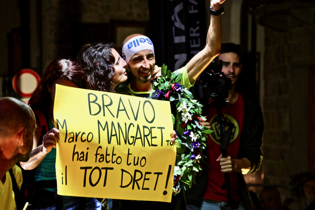 Sbagliato. Chiedere a Marco Mangaretto, vincitore, ieri sera, del Tot Dret. “A fine giugno mi hanno dato la possibilità di fare questa gara, ma come gli atleti di una volta non è che mi sono chiesto: Come faccio a prepararla in così poco? Ma io non sono uno che prepara le cose, a me piace partire”, ci ha raccontato. “Mi piace partire forte, poi vado avanti col mio ritmo, ma devo arrivare sempre fino in fondo. Piuttosto rallento, ma mi è capitato solo una volta di ritirarmi, per un problema alle braccia”. È davvero un atleta d’altri tempi, Mangaretto: corre per passione, ama la montagna e sa capire e gestire bene il proprio corpo. “A casa avevo detto che ci avrei messo 24 ore, ci ho messo 24 ore ed un minuto, non ci sono andato tanto lontano, no?”, scherza. Niente barrette energetiche per lui, solo frutta (“avrò mangiato forse dieci banane”) e crostatine. Uno che si ritaglia il tempo per allenarsi tra la famiglia ed il lavoro da operaio metalmeccanico a Pont-Saint-Martin. Uno che quando cade e gli sanguina un dito e si ritrova un ginocchio viola si rialza e riparte, senza neanche farsi medicare.