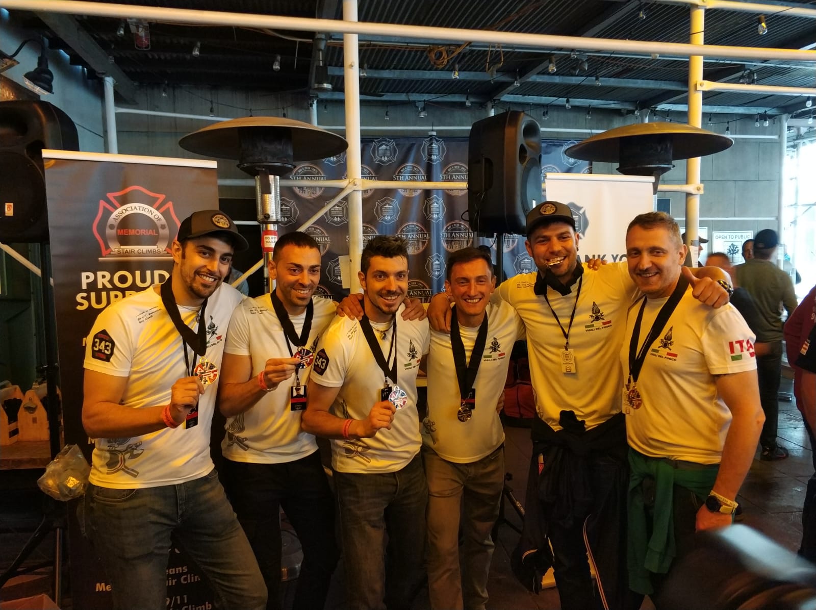 Jonathan Lentini e Luca Pison, assieme a Diego Giacché, Fabio Vauthier, Diego Tortoioli e Roberto Fosson hanno vinto la gara che commemora i colleghi morti durante l’attacco alle Torri Gemelle, salendo gli 80 piani di scale del World Trade Center 3 in un’ora, un minuto e nove secondi cumulativi.