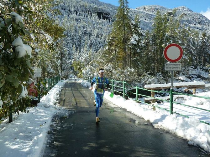 Più forte degli avversari e della neve. Questa mattina Dennis Brunod si è imposto nella prima edizione del Mont Avic Trail, gara che lui stesso ha ideato e disegnato. Il maltempo ha costretto l’organizzazione a rinviare la partenza e modificare i percorsi un paio di volte: alla fine lo start è avvenuto alle ore 10, quando il sole aveva già fatto capolino tra le montagne, e i due tracciati sono diventati di 20km il più lungo (dai 30 originariamente previsti, ndr), ai 10km della gara breve.