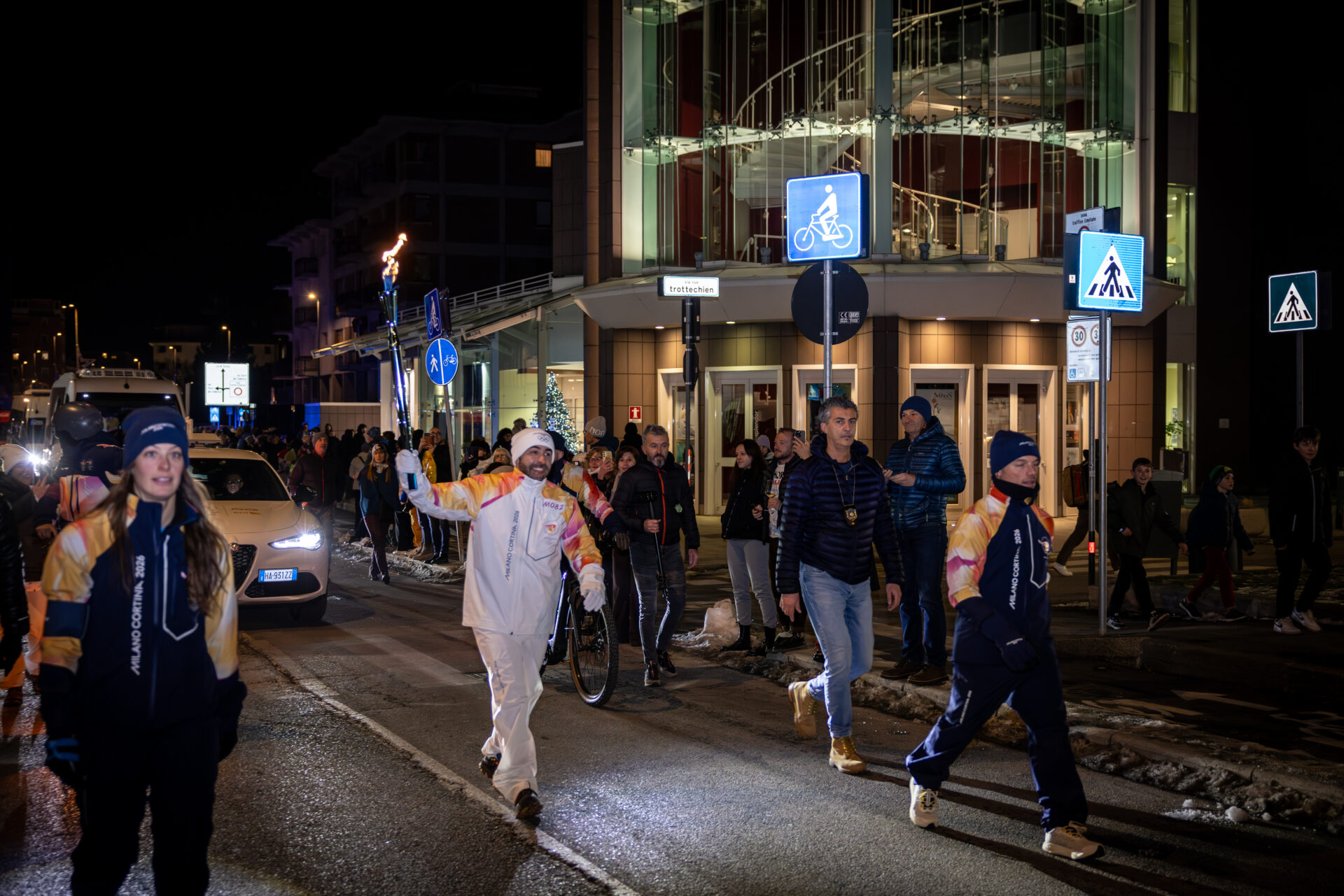 Ventitré i tedofori che, tra si sono passati di mano in mano – tra i molti bambini e i tanti curiosi – la “Fiamma” che dalla cima della sua torcia ha acceso le vie della città, partendo da Montfleury per arrivare davanti alla nuova Università. Una torcia che, negli ultimi metri, è arrivata tra le mani di Federico Pellegrino, portabandiera – con Federica Brignone dei Giochi – e pronto, anzi prontissimo, per la sua ultima apparizione “a cinque cerchi”.