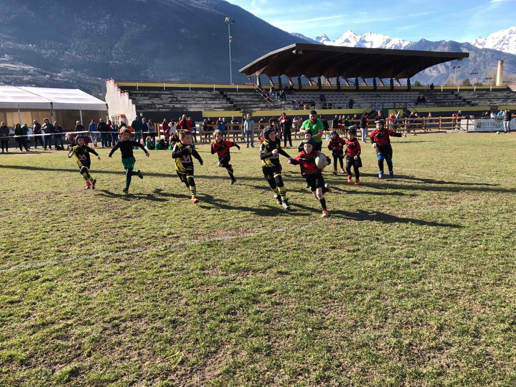 La ripresa si apre con la stessa dinamica di gioco e con lo Stade incapace di reagire se non difendendosi strenuamente nei propri 22 metri per i primi dieci minuti. Poco dopo il quarto d’ora, però, l’inerzia cambia e dalla mischia sbuca Massimo Gontier che va a schiacciare. Pochi minuti dopo è ancora Duc a marcare al termine di una bella azione corale portata avanti da Carlino e Barbieri; le due difficili trasformazioni di Anselmet valgono il 27-3. Attorno al 25’ gli ospiti provano a tornare a farsi sotto con una meta non trasformata, ma una meta tecnica alla mezz’ora regala allo Stade Valdôtain il punto di bonus offensivo ed i 7 punti della tranquillità. Ancora una meta ospite, proprio sul triplice fischio dell’arbitro, fissa il risultato sul 34-13.