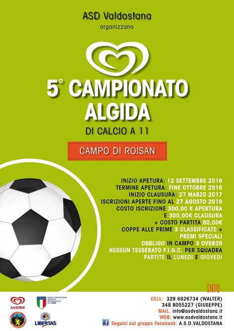 Settembre è il mese in cui l’estate volge al termine e insieme alla bella stagione, purtroppo, anche il periodo delle ferie e delle vacanze si esaurisce un po’ per tutti. A rendere meno triste il rientro a scuola o al lavoro, però, c’è la ripresa di tutti i principali campionati degli sport di squadra. Tra questi, in Valle d’Aosta, spicca il Campionato Algida di Calcio a 11 organizzato dall’Asd Valdostana presso il campo sportivo di Roisan.