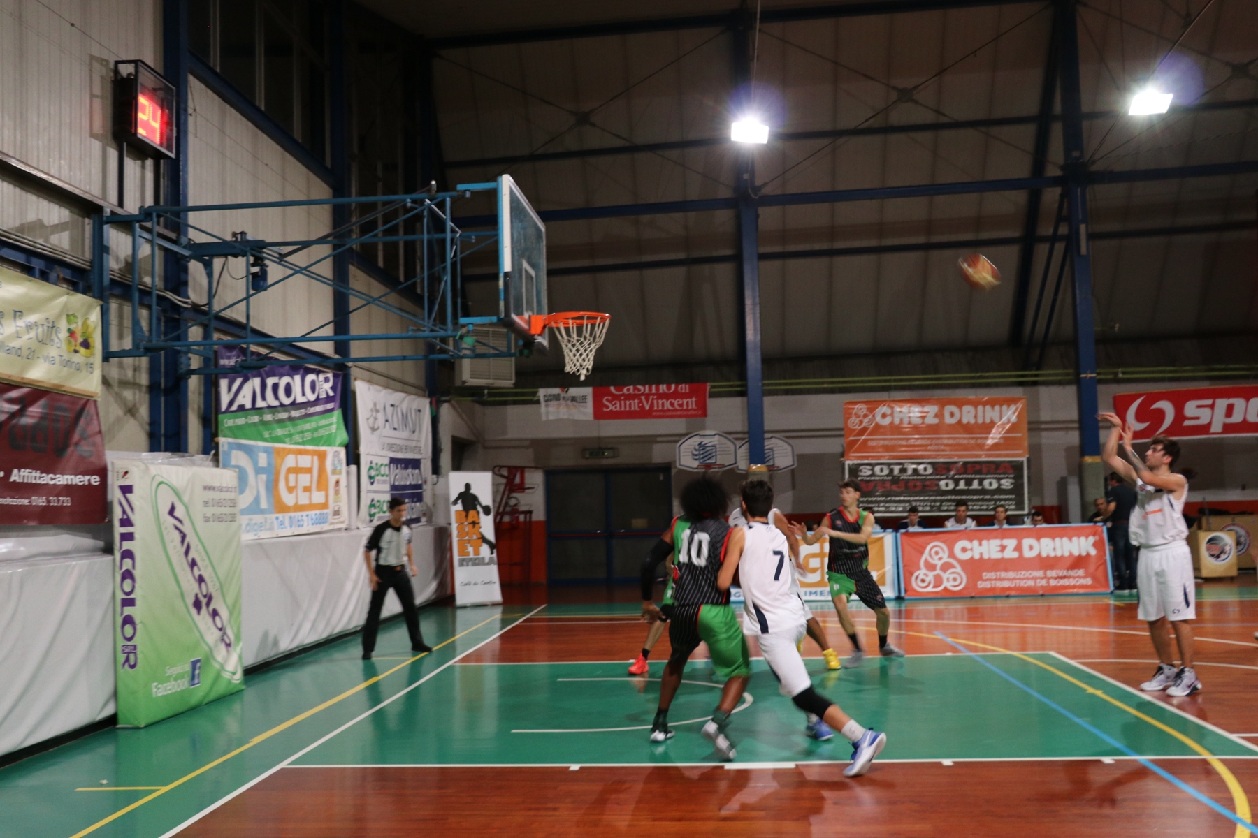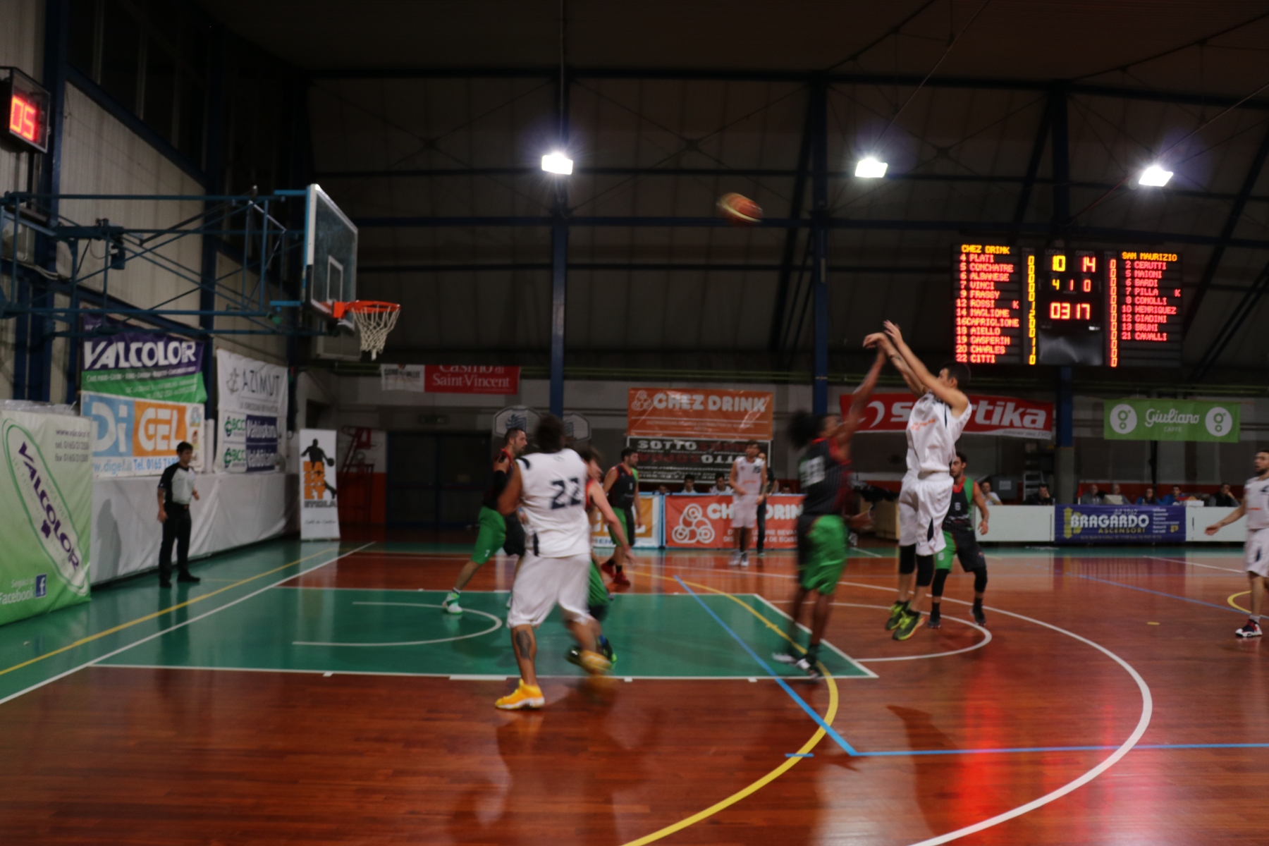 Non c’è due senza tre, e se la terza vittoria consecutiva è un piccolo miracolo che arriva contro la super favorita del campionato c’è ancora più gusto. Il San Maurizio Jaks, infatti, arriva ad Aosta in testa alla classifica a punteggio pieno insieme al Ghemme, entrambe accreditate da tutti come le squadre da battere in questo girone A della serie D regionale. Anche lo Chez Drink è a punteggio pieno, avendo riposato la prima giornata e vinto gli altri due incontri. Al Pala Miozzi la partita è molto equilibrata e si apre con un primo quarto giocato punto a punto, con i piemontesi più precisi nei liberi e nei tiri da tre rispetto ai valdostani. La squadra tiene bene in difesa e chiude in vantaggio 19-18, ripetendo il copione nel secondo quarto, andato al San Maurizio per 17-16: perfetta parità (35-35) al termine della prima metà di gioco. Con una grande difesa, l’Eteila mette la freccia nel terzo quarto (13-7), andando in vantaggio 48-42, e conclude la partita perfetta con uno straordinario ultimo parziale di 20-6, per il finale 68-48.