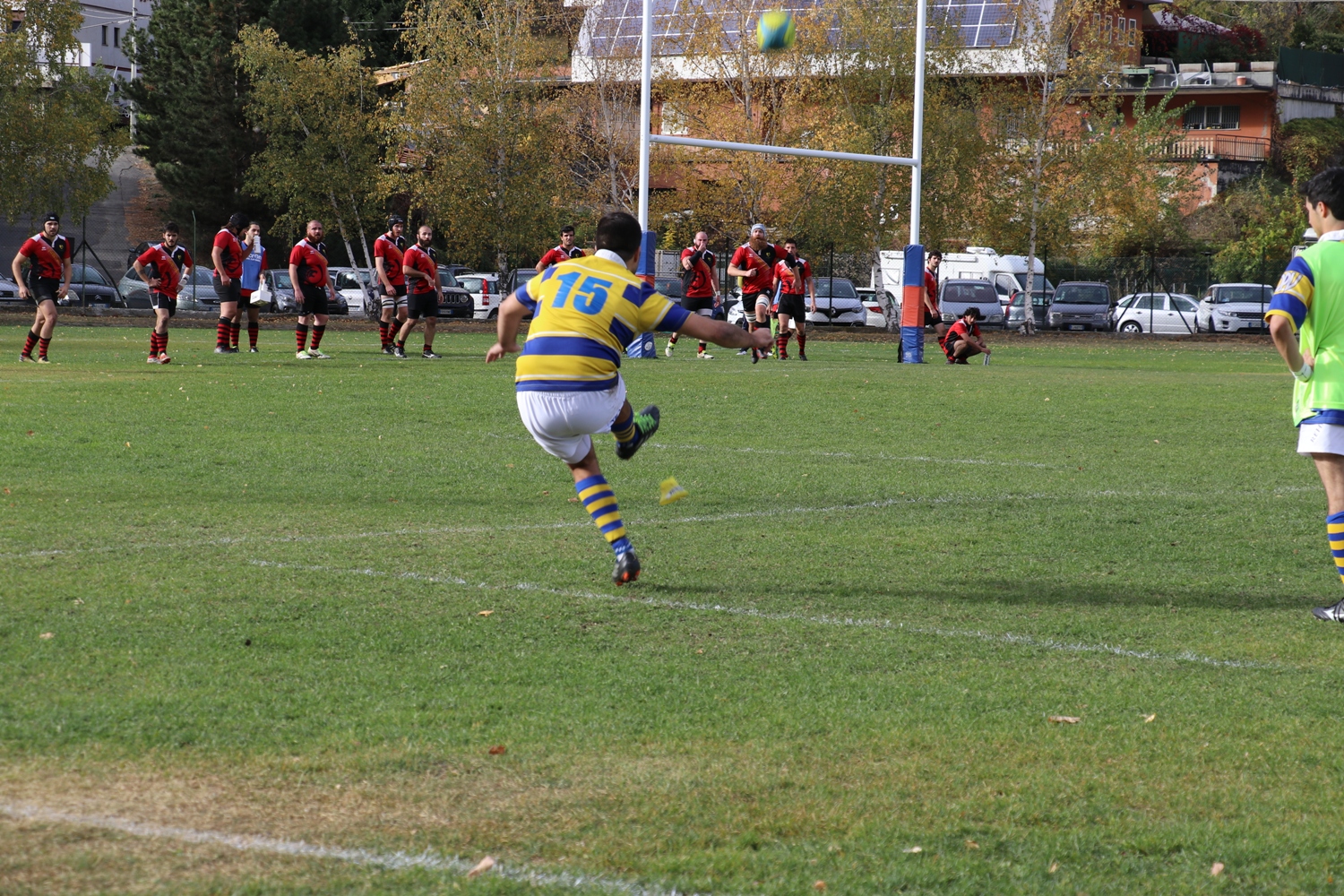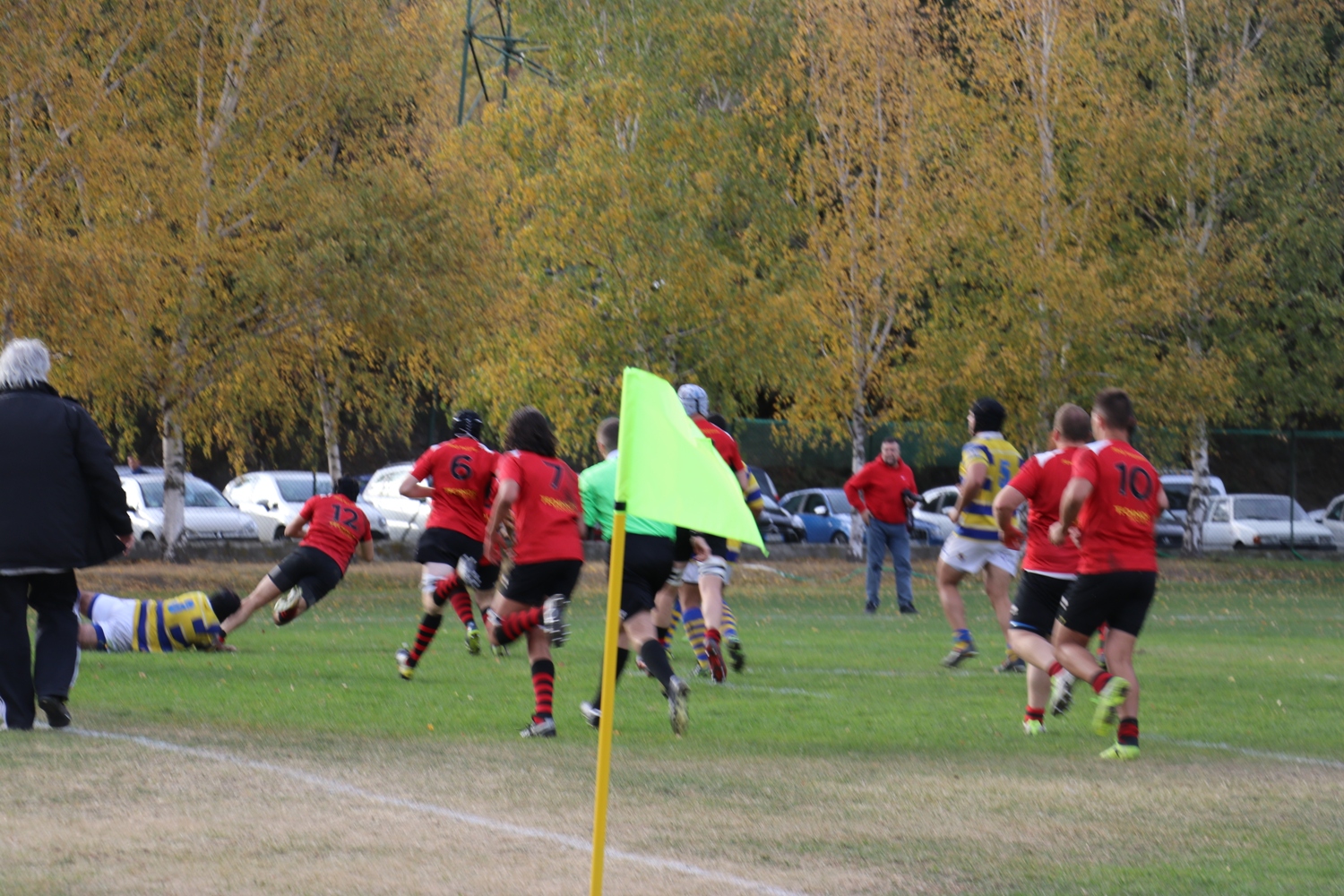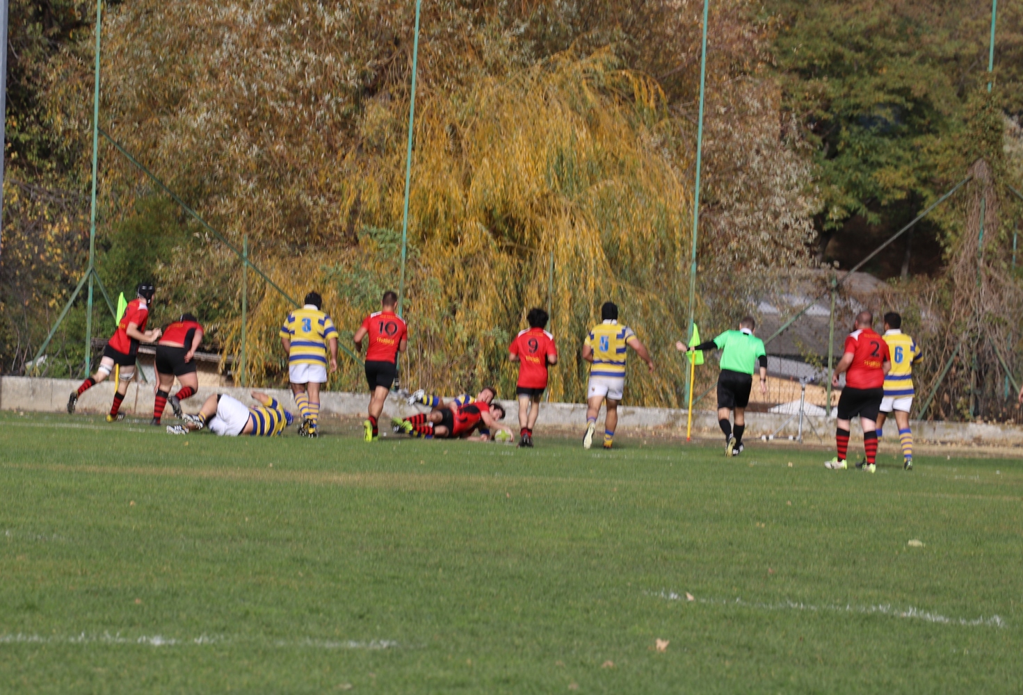 Inizio rabbioso degli ospiti, che attaccano subito forte e costringono lo Stade agli straordinari negli ultimi metri. Il Torino va subito in vantaggio con una meta al 5’, non trasformata. Passano appena 3 minuti, ed i gialloblù sfruttano un errore in fase di impostazione dello Stade per marcare la seconda meta (trasformata). Da qui la partita cambia volto, e sono i ragazzi di Chiesa a fare il gioco ed a travolgere gli avversari. Già al 10’ Carlino trova la meta su una bella azione di ripartenza. Pochi minuti dopo Zanuso va molto vicino a marcare su azione di Nato, ma viene fermato con le cattive a due metri dalla linea di meta e fa ammonire un avversario. È ancora Carlino, al 20’, a sfruttare la superiorità numerica per siglare la seconda meta (trasformata da Anselmet) che vale il pareggio. I Leoni non si accontentano e continuano ad attaccare, lasciando gli avversari quasi incapaci di superare la linea mediana. Nell’unica azione offensiva del Settimo, però, lo Stade si fa trovare distratto su una punizione avversaria, e la meta piemontese in mezzo ai pali viene trasformata. Nel recupero succede di tutto: cartellino rosso e ospiti costretti in 14 per tutta la gara per un brutto fallo su Frazzetta. Proprio prima del fischio finale, la meta di Nato e la trasformazione di Anselmet rimettono il risultato in parità (19-19). L’entusiasmo del pubblico trascina lo Stade, che riparte rabbioso e non concede nulla agli ospiti. Dopo un’azione insistita, al 17’ Duc è intelligente a battere una punizione alla mano ed a trovare il vantaggio. I Leoni, però, non riescono a sfruttare la superiorità numerica ed a chiudere la partita e vengono presi dalla paura di vincere, concedendo troppo campo agli avversari. Dopo tre quarti di gara in sordina, i piemontesi riprendono coraggio e trovano, al 37’, la meta del pareggio. Un pareggio che, per loro, sa di vittoria, visto che a fine gara sono gli unici ad esultare. Per lo Stade sfuma una vittoria più che meritata che avrebbe sancito l’aggancio in vetta proprio contro gli avversari di giornata ma, se dopo il derby serviva una reazione d’orgoglio, i ragazzi di capitan Gontier hanno dimostrato tutto il loro valore.