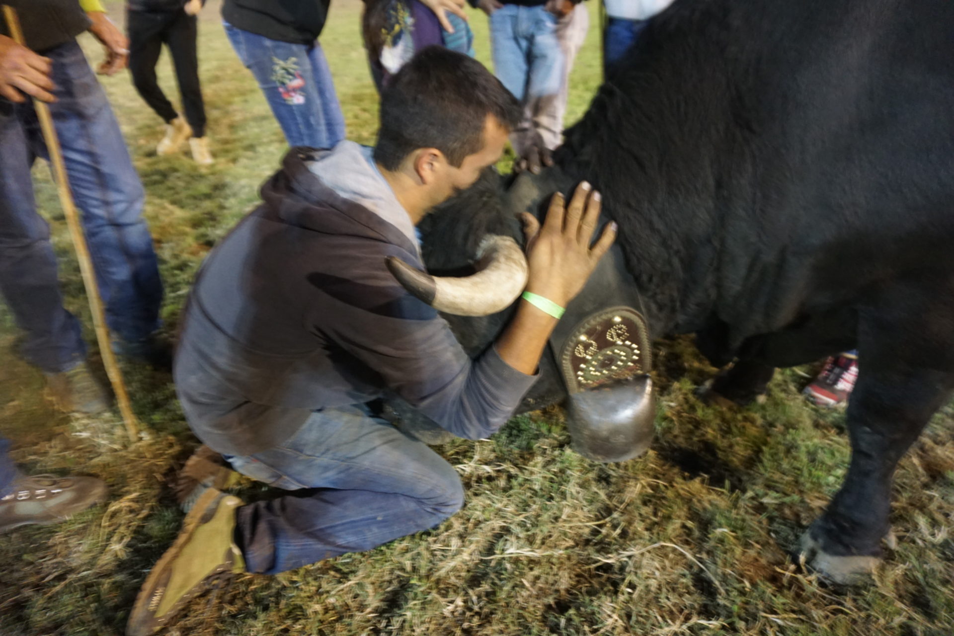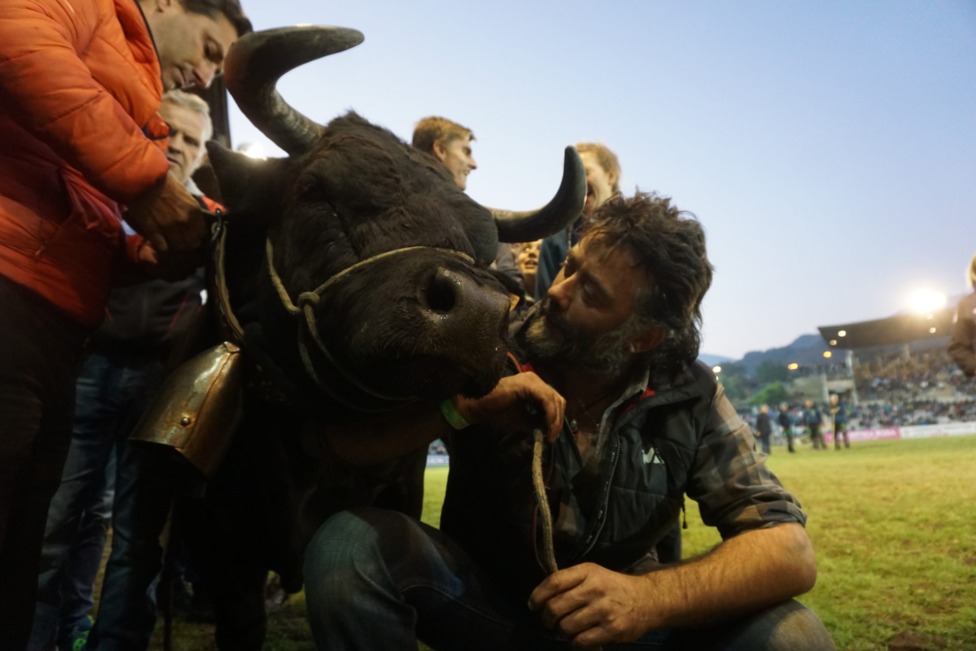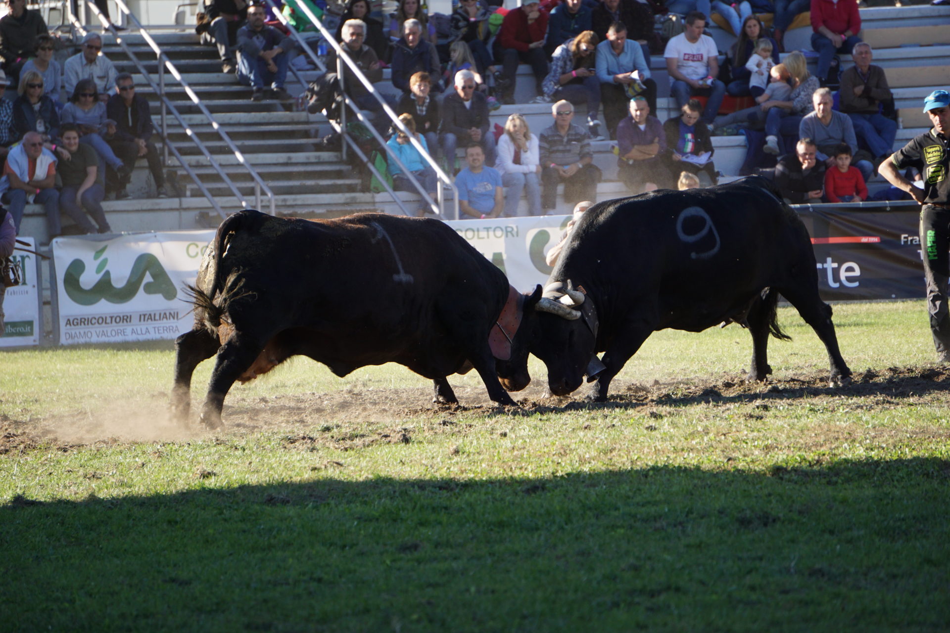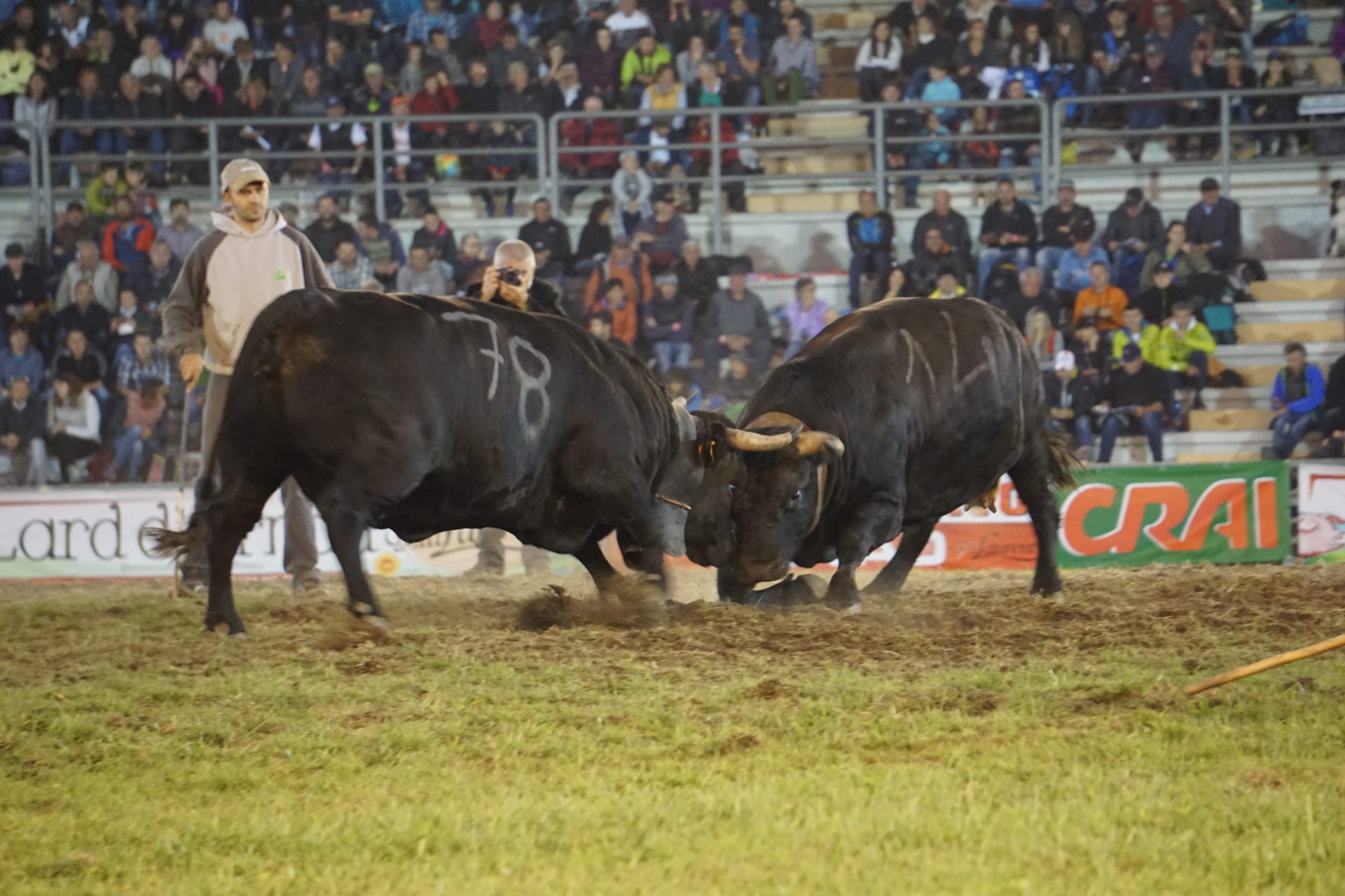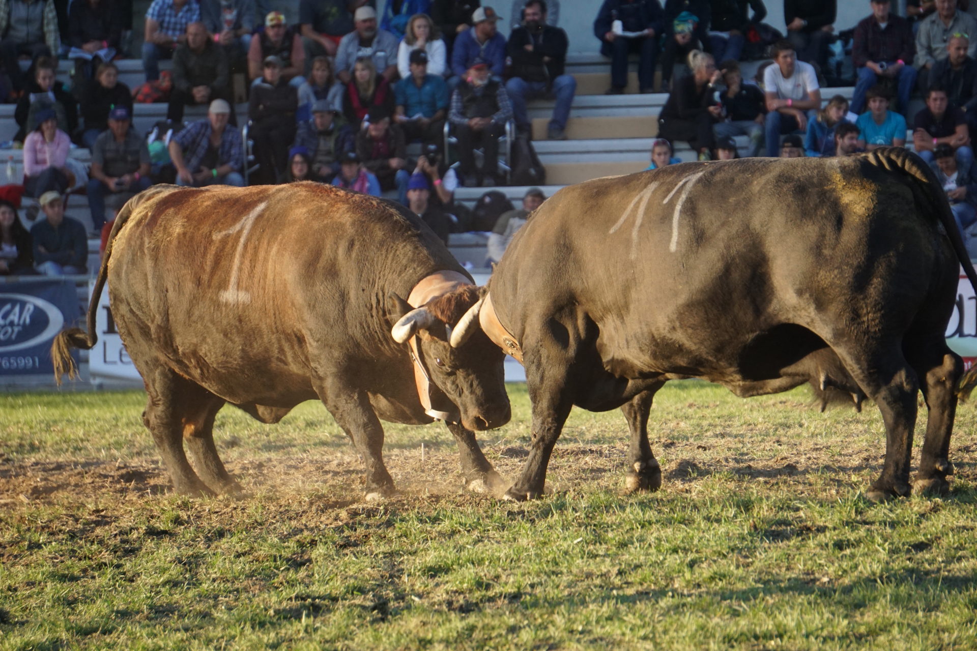 “Oggi porto a casa due carreaux, diciamo che per essere la mia prima regionale non potrei dire altro se non che sono emozionato e felice. Quasi senza parole. Non so se una situazione del genere mi ricapiterà, ma oggi me la godo”. Il giovane Alex Cerise di Fénis cerca di contenere la gioia che la sua Canaille è riuscita a regalargli battendo in un combat lampo Tiki della coppia di allevatori Chamonin-Frassy di Arvier. L’urlo liberatorio di Alex è quello della nuova generazione valdostana che da tempo si è affacciata al mondo delle Batailles des Reines e che si sta facendo strada a suon di vittorie e soddisfazioni. Il momento storico è importante, ora sono i figli degli storici allevatori a dare nuova linfa e entusiasmo al mondo dei combats. Alex è uno di questi giovani e la sua Canaille rispecchia a pieno la voglia, la fatica e il sudore di uno dei mestieri più duri e difficili del panorama valdostano. Il quarto di finale della neo-regina è rapido e indolore, tranne che per l’avversaria, l’ex reina 2017 Guerra di Gildo Bonin di Gressan. La magia di una vecchia regina che affronta una novella viene spenta dall’infortunio che Guerra subisce subito, alle prime battute, quando il suo corno si sfila e l’allevatore, avvertito il problema, decide di portarla via.