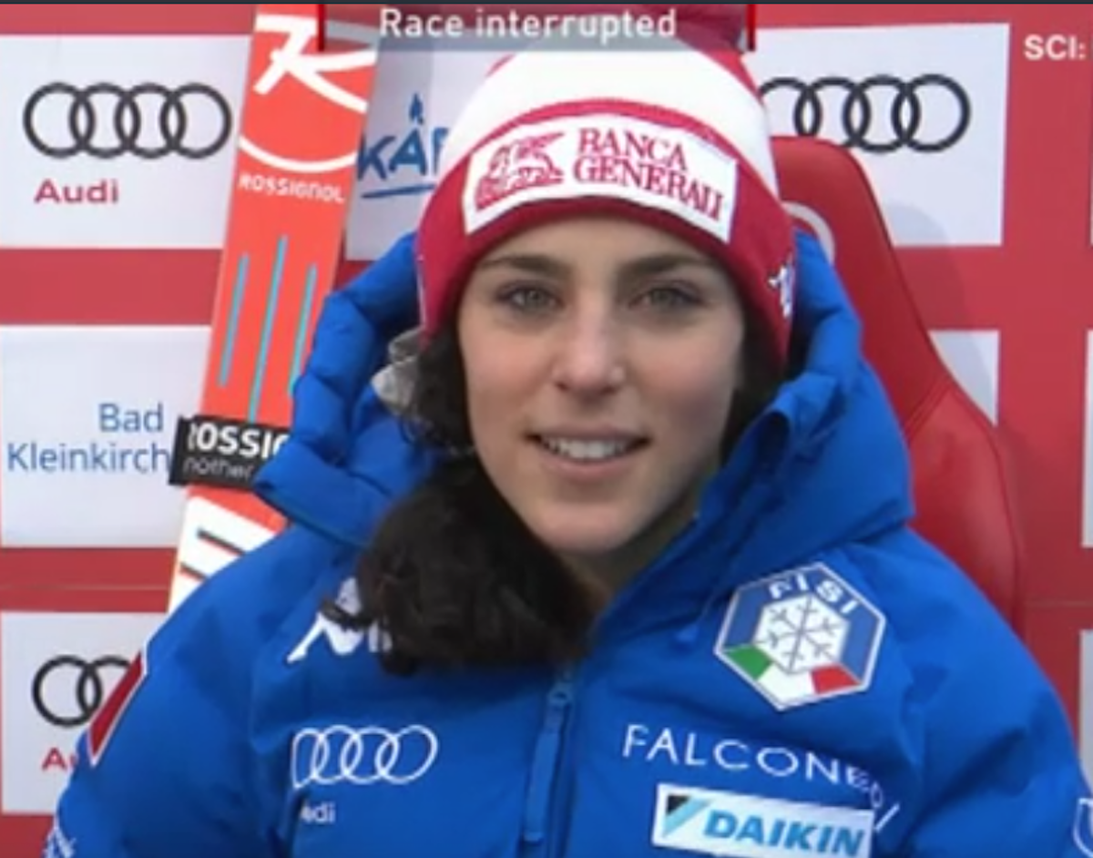 Diciotto i centesimi di vantaggio sulla svizzera Lara Gut mentre sul gradino più basso del podio sale la tedesca Cornelia Huetter. Per la Carabiniera di La Salle si tratta della settima vittoria in Coppa del Mondo, la seconda di stagione, dopo il gigante di Lienz e del 21esimo podio in carriera.