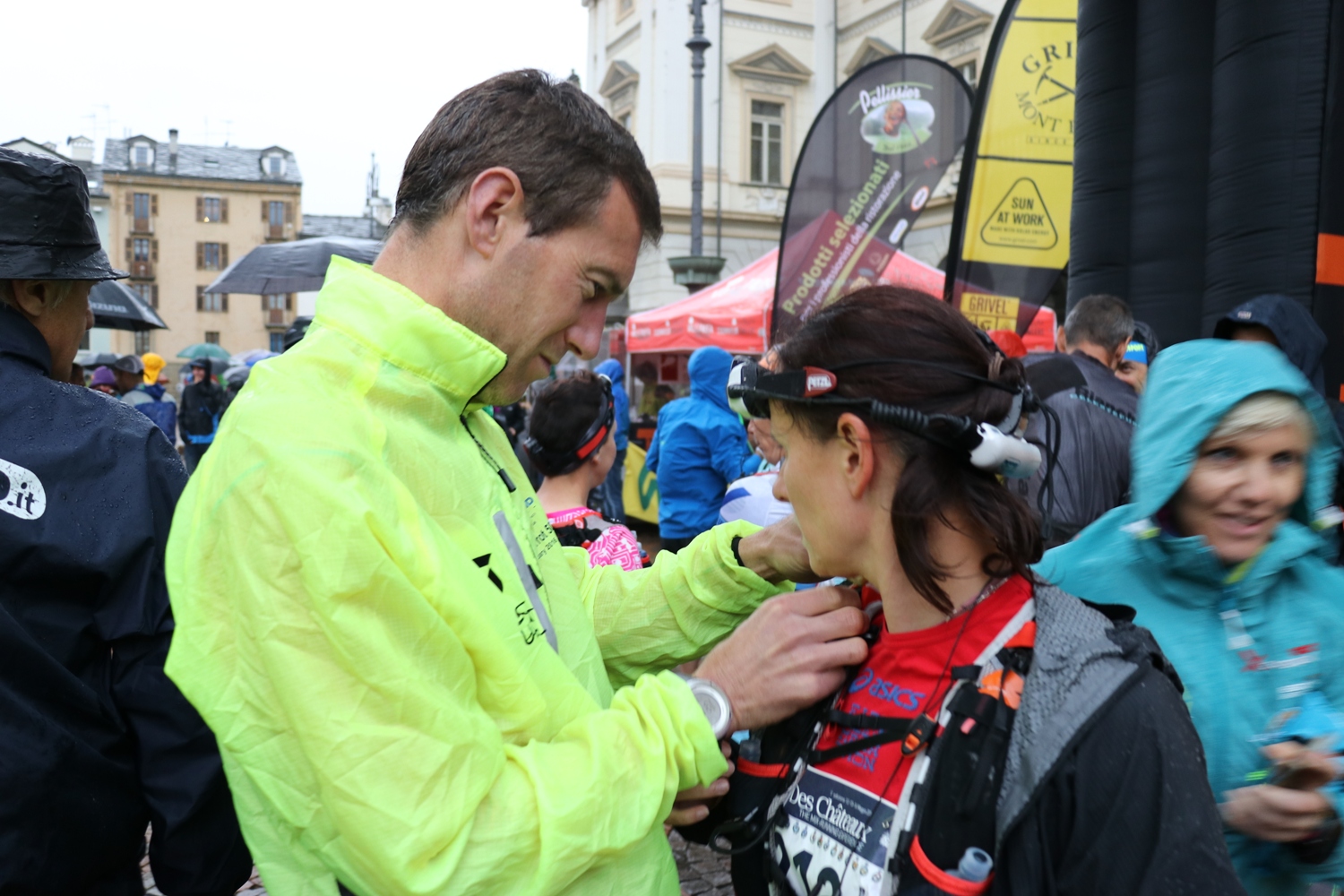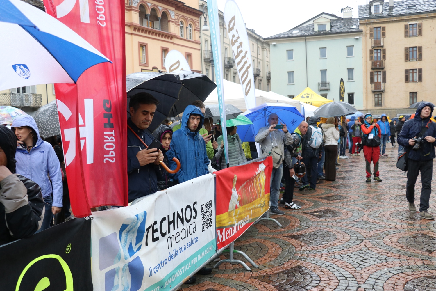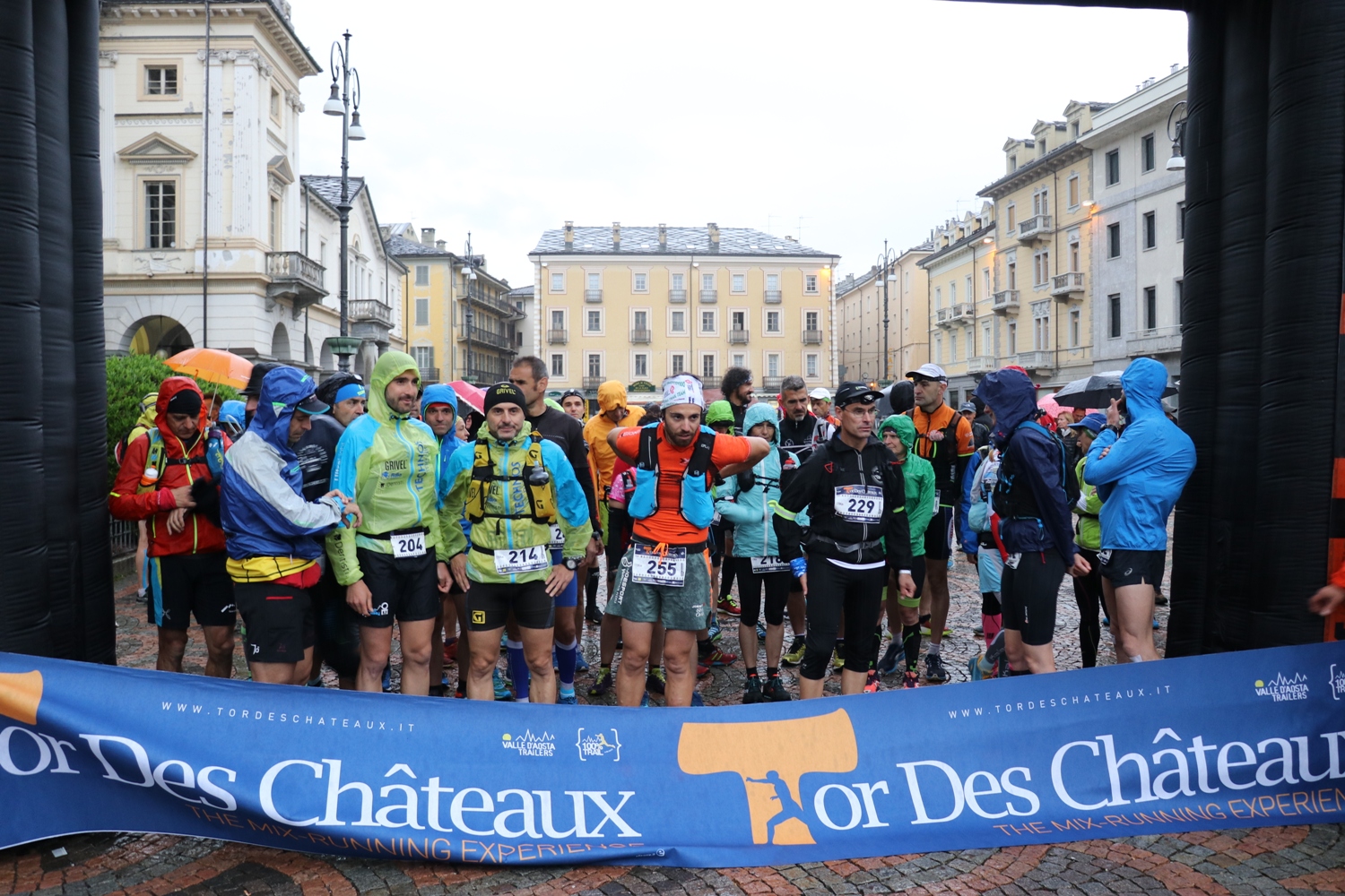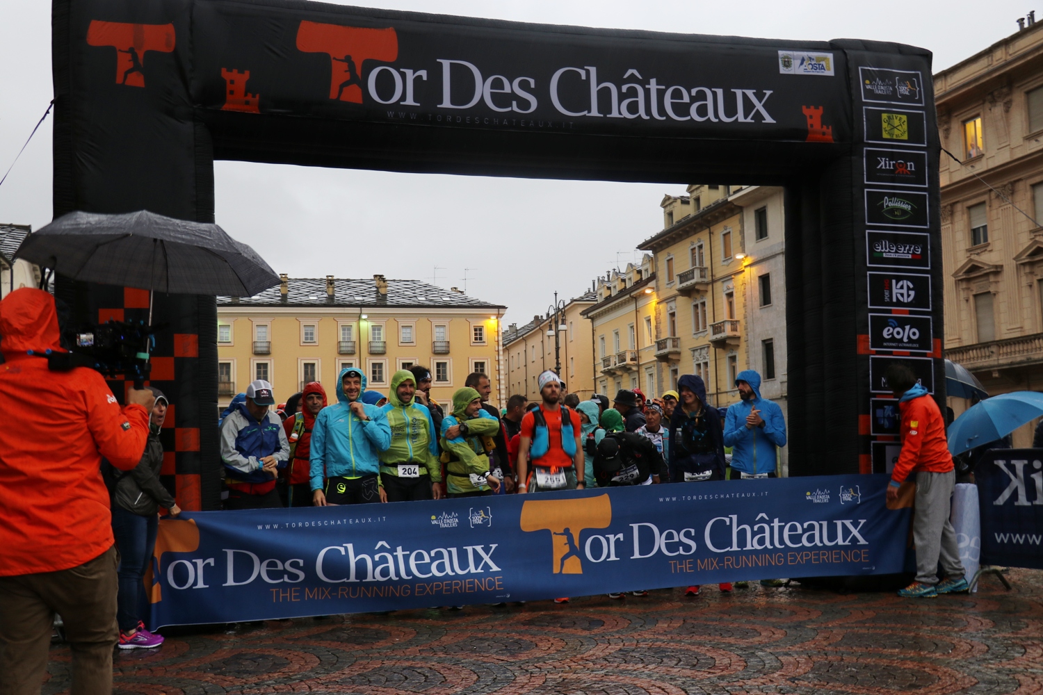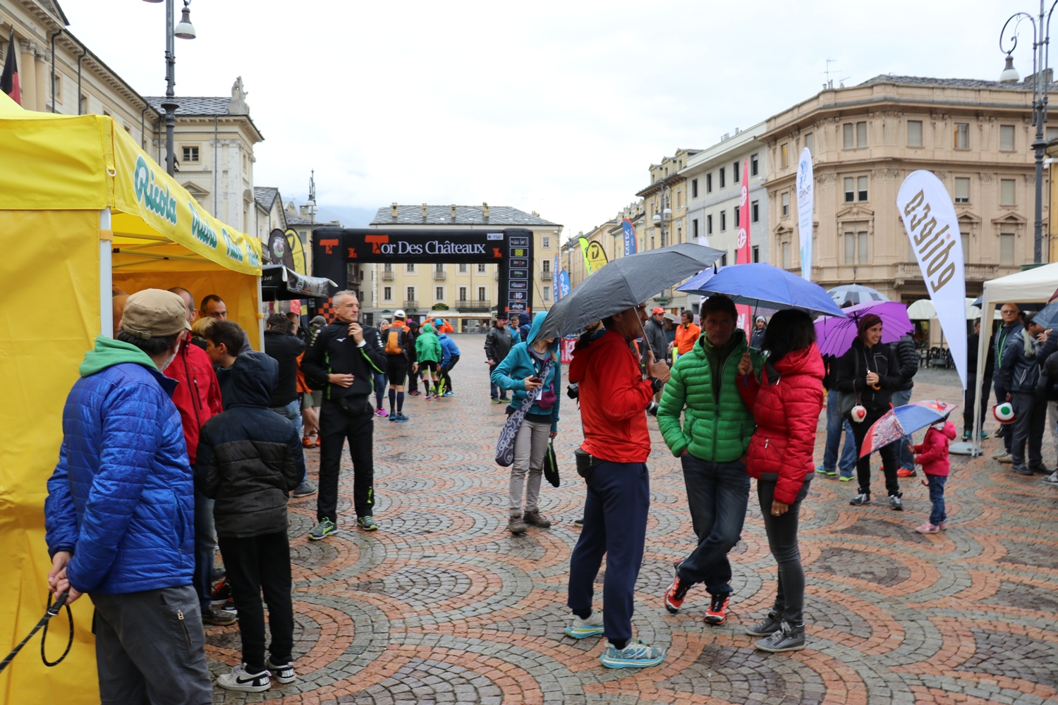 La photogallery della partenza della 170 km del Tor des Chateaux da Piazza Chanoux sotto la pioggia e di alcuni passaggi della 100 km