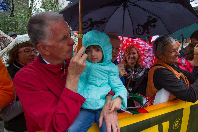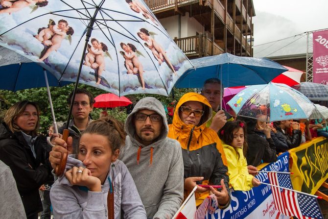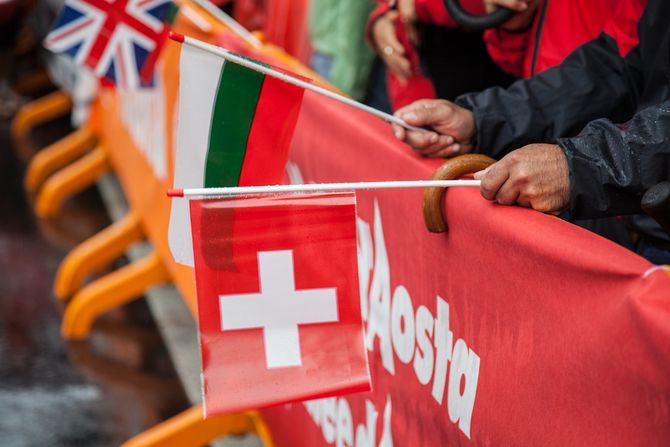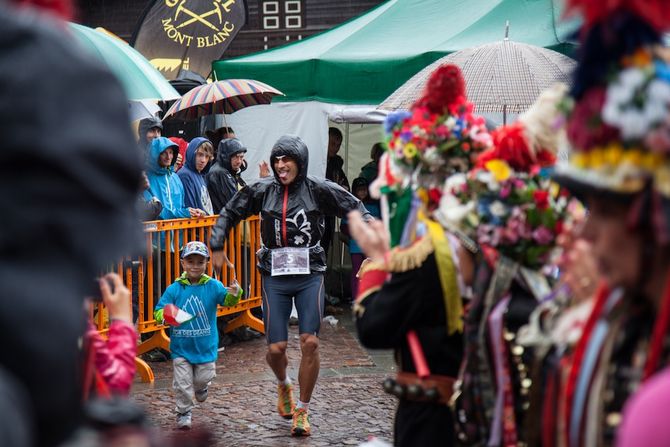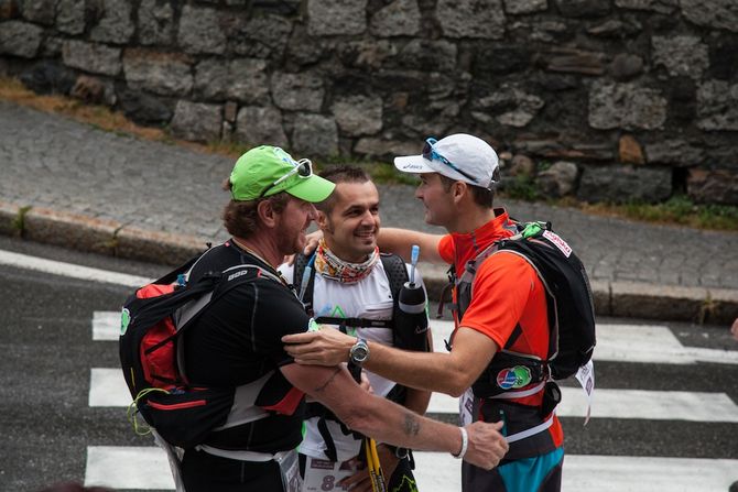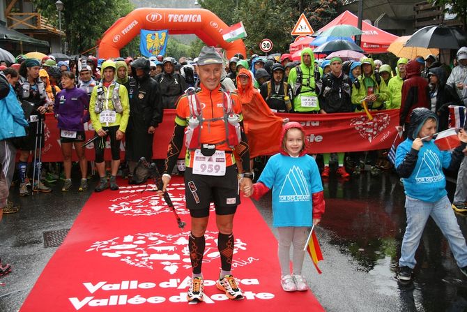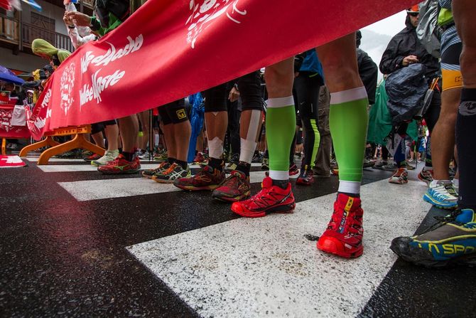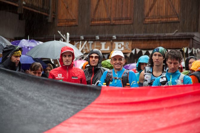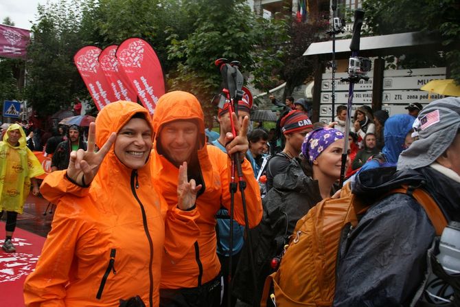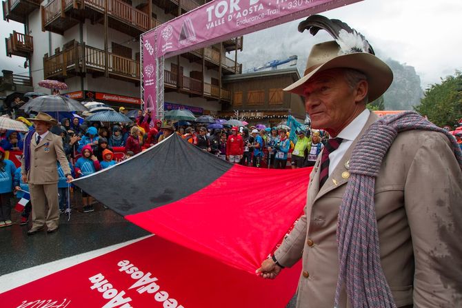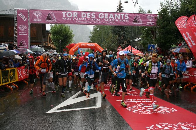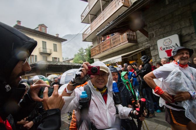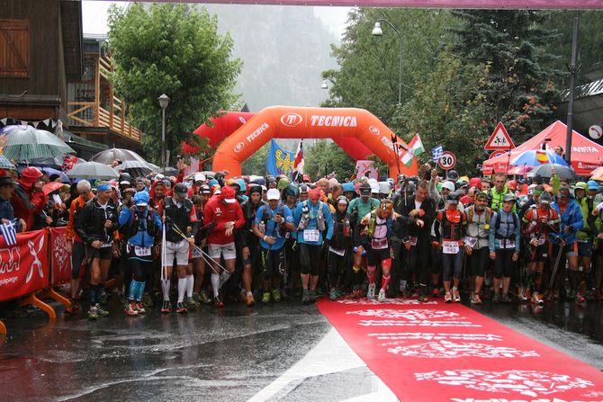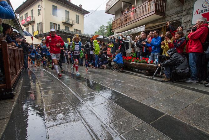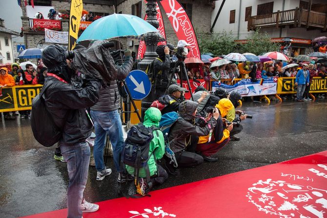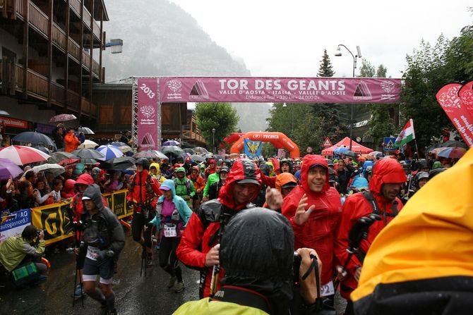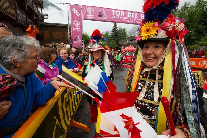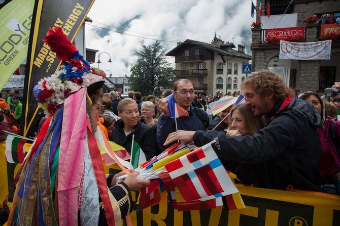 Tanta gente ha voluto sostenere alla partenza gli atleti che toccheranno il cielo con un dito nella lunga traversata tra le cime della Valle d’Aosta: tante nazioni, tante facce, tanti colori, tanta stampa, tanta gente, tanto tifo e tanto altro ancora.