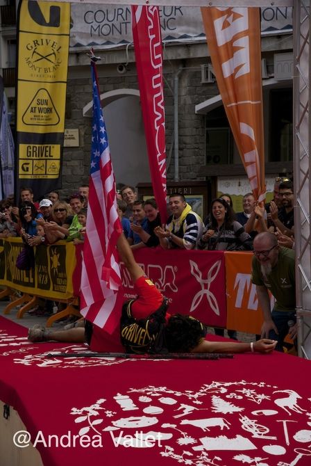 Questo pomeriggio, alle 14.29, è arrivato a Courmayeur il secondo in classifica generale Nickademus Hollon, l’americano 25enne del Team Grive.