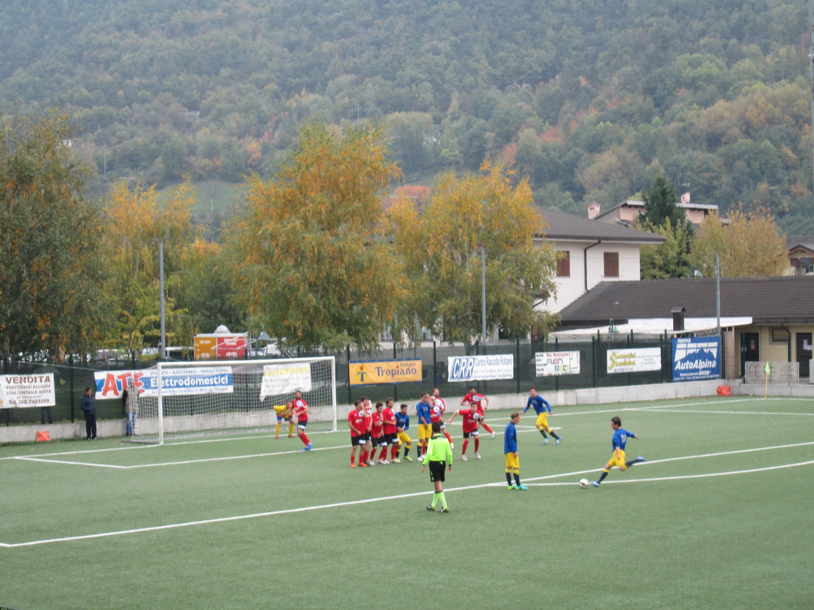 Nonostante questo, però, i ragazzi hanno voglia di riscatto e di dimostrare che la posizione di classifica è ingiusta. Inizia bene il Baveno, che impegna Castelnuovo prima al 2’, con un tiro centrale di Cabrini, e poi al 6’, con un’incornata di Cherchi. Si fa vedere lo Charvensod al 19’, con una punizione da buona posizione di Caputo che però non scende. Rovira in avanti lotta e sgomita, ma è troppo isolato e gli vengono fischiati molti falli La direzione di gara, in generale, è un po’ severa sui falli ma permissiva per quanto riguarda i cartellini. Al 25’, il primo tiro in porta dello Charvensod porta i gialloblù in vantaggio, con un bel destro da fuori area di Pignatelli su cui non arriva Romani. Episodio dubbio in area valdostana al 32’, quando Piraccini va giù ma l’arbitro non fischia né il rigore né la simulazione. Un minuto dopo, il pareggio del Baveno: palla persa sulla sinistra dallo Charvensod, pallone filtrante di Motetta per Cherchi che, lasciato solo, può battere Castelnuovo. Tenta di reagire la squadra di Fermanelli, con una punizione insidiosa di Caputo dalla destra che attraversa tutta la linea di porta avversaria senza che nessuno riesca a spingerla dentro. Al 38’ arriva il vantaggio degli ospiti sugli sviluppi di un corner, corretto in rete da Ramalho a due passi dalla porta. La sua posizione sul precedente tocco di un compagno di squadra, però, sembrerebbe irregolare. Non succede più niente, e il primo tempo si conclude con un risultato troppo severo per la squadra di Fermanelli, che lotta su ogni pallone ma che dimostra i limiti che hanno caratterizzato questo inizio di stagione: qualche imprecisione ed ingenuità, che vengono pagate a caro prezzo, nonché una carenza di soluzioni ed idee nella metà campo avversaria. Il secondo tempo è poverissimo di occasioni e quasi non giocato: praticamente disoccupati i portieri, lo Charvensod prova a costruire ma disordinatamente, con lanci lunghi spesso imprecisi, mentre il Baveno si chiude e prova a ripartire sfruttando le sviste valligiane. Da segnalare l’ennesimo infortunio per la squadra del presidente Lattanzi, con Didier Vuillermoz costretto ad uscire al 57’, una punizione da posizione interessante (tirata alta da Dayné) ed il disperato assalto finale del portiere Castelnuovo.