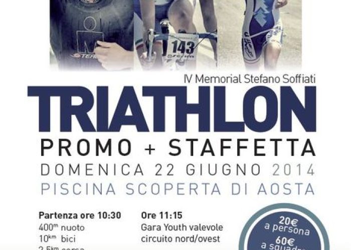 Per la prima volta la città di Aosta ospiterà una gara di triathlon. L’appuntamento è per domenica 22 giugno con la quarta edizione del Memorial Stefano Soffiati presso la piscina scoperta e l’area di Tzambarlet di Aosta. "Ho accolto con favore – spiega l’Assessore comunale allo Sport, Patrizia Carradore – l’iniziativa perché permette di mettere in evidenza la piscina olimpionica di Aosta e inoltre va nella direzione di creare un binomio fra sport e turismo".