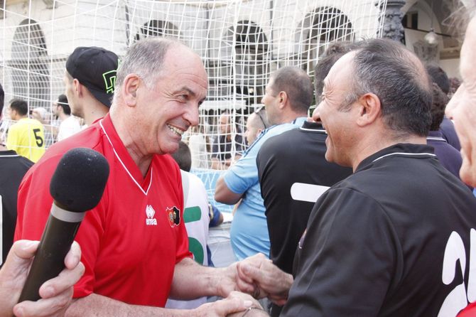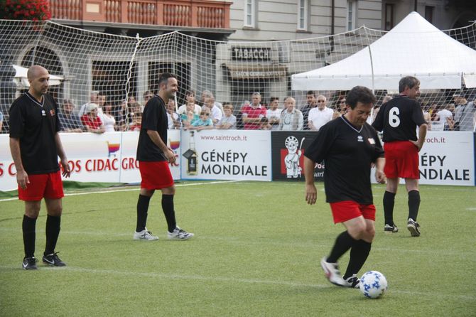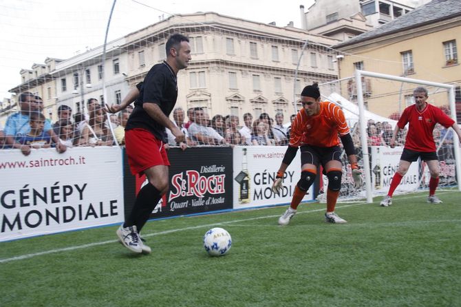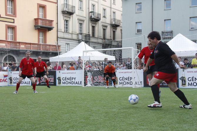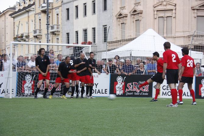La partita di beneficenza – le “quote” d’iscrizione saranno devolute a favore dei terremotati dell’Emilia Romagna – si è svolta ieri sera in Piazza Chanoux, nell’ambito del Trofeo Città di Aosta di calcio a 5.