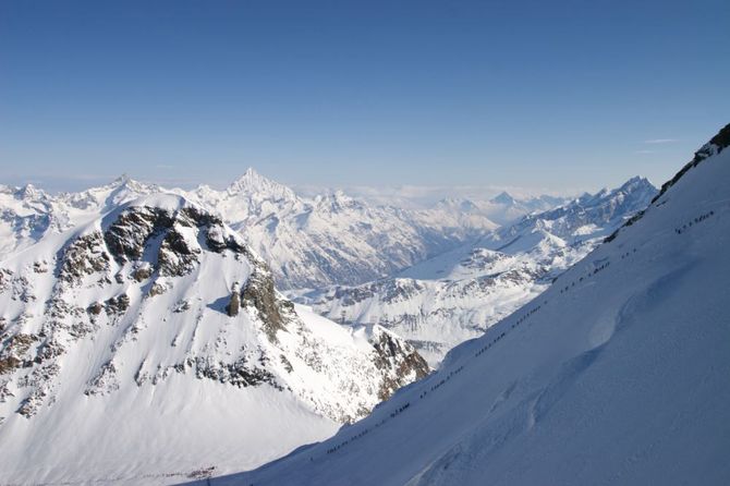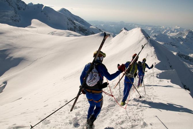 Dopo il rinvio del 19 aprile scorso, sabato 2 maggio la maratona dei ghiacciai si è disputata in una cornice superlativa, complice un tempo splendido e una folla di 798 atleti divisi in 266 cordate da tre elementi ciascuna.