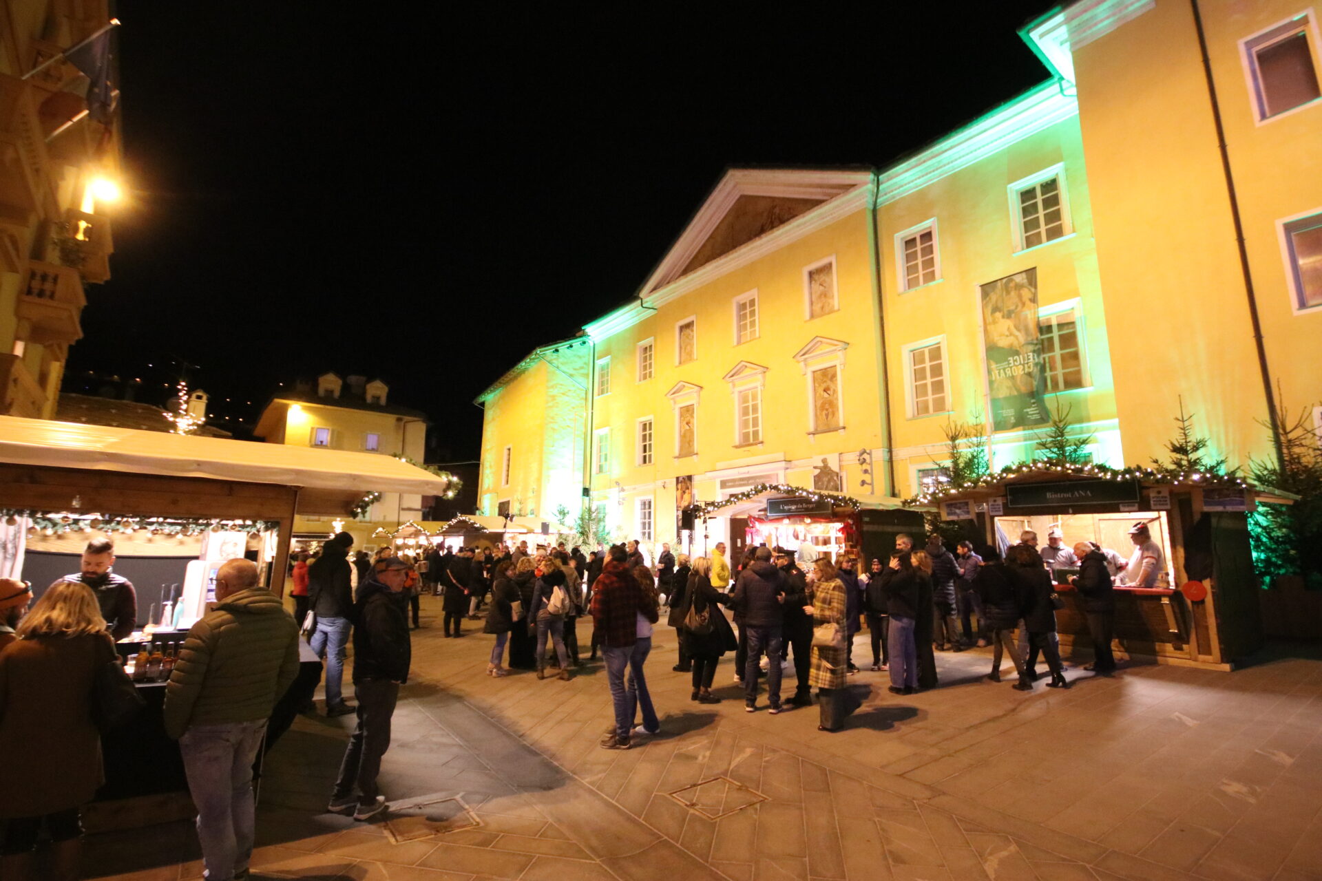 È stato inaugurato ieri sera – venerdì 24 novembre – il Marché Vert Noël, il tradizionale mercatino di Natale che ogni anno attira nel cuore di Aosta valdostani e turisti. In programma dal 25 novembre 2023 al 7 gennaio 2024, quest’anno il Marché torna a colorare piazza Roncas, piazza Giovanni XXIII, davanti alla Cattedrale, e piazza Caveri (solo per i due chalet istituzionali e per gli eventi), confermando così la location diffusa già proposta lo scorso anno.