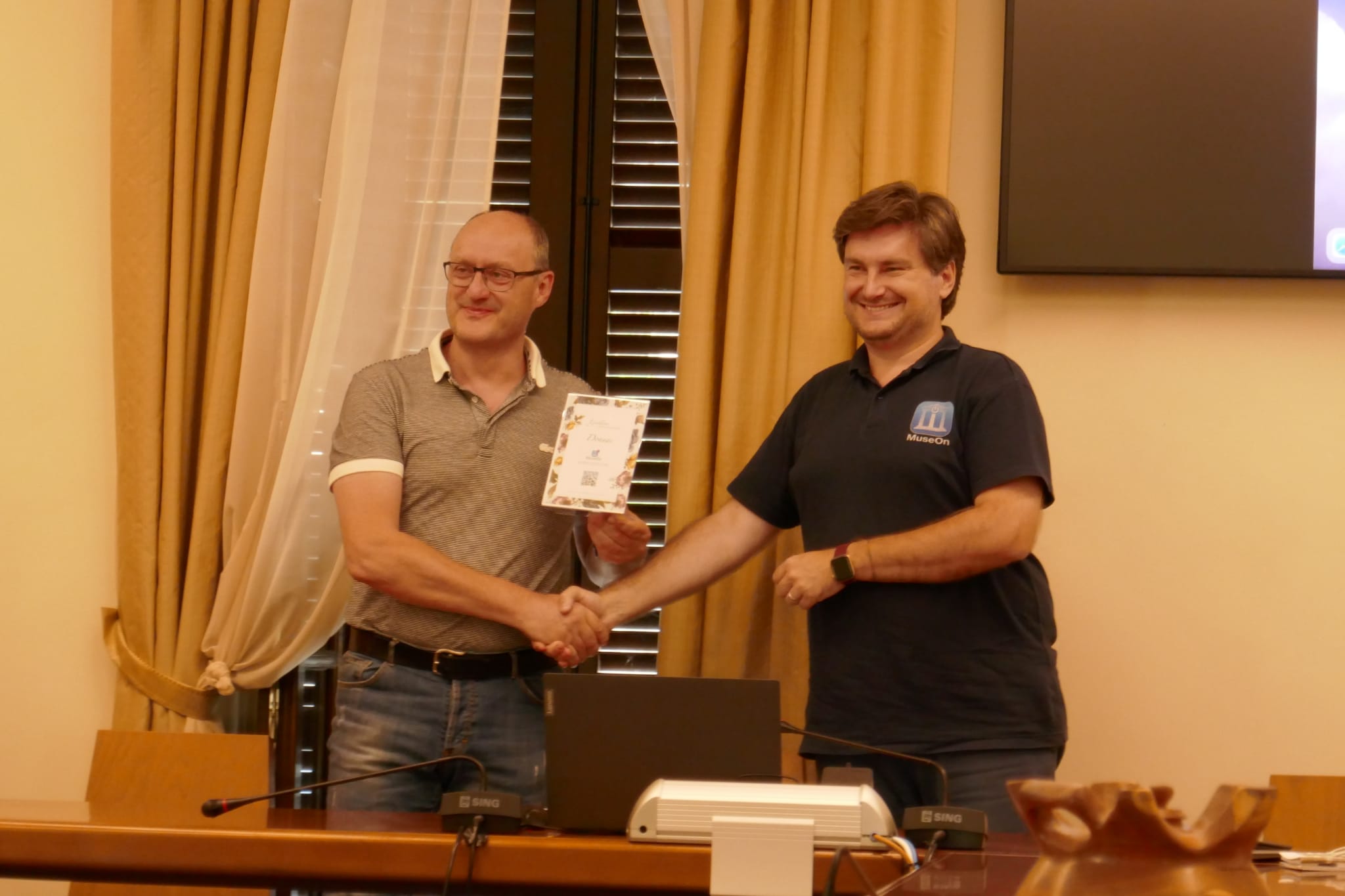 “Noi siamo contentissimi di questa cooperazione” risponde la Presidente del Forte di Bard Ornella Badery, presente all’incontro tenuto nella sala consiliare di Donnas. “L’idea era quella di costituire un polo che, attraverso l’utilizzo di una tecnologia nuova, migliorasse la circolazione dei turisti”. La fruizione di MuseOn ha dato a Bard una “svolta all’offerta in termini di guida museale” afferma la Presidente. “Questo strumento ci toglie dal dover affittare le guide e le radio da mettere con le cuffiette, portando il servizio direttamente sul cellulare dell’utente, è un utilizzo molto più semplice e immediato, ci permette di avere anche più lingue”.
