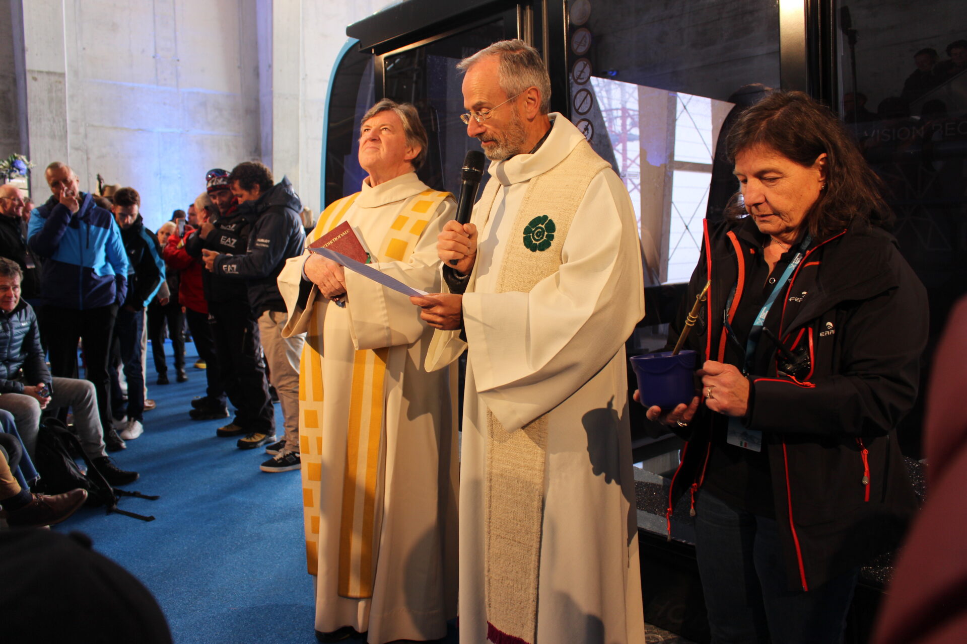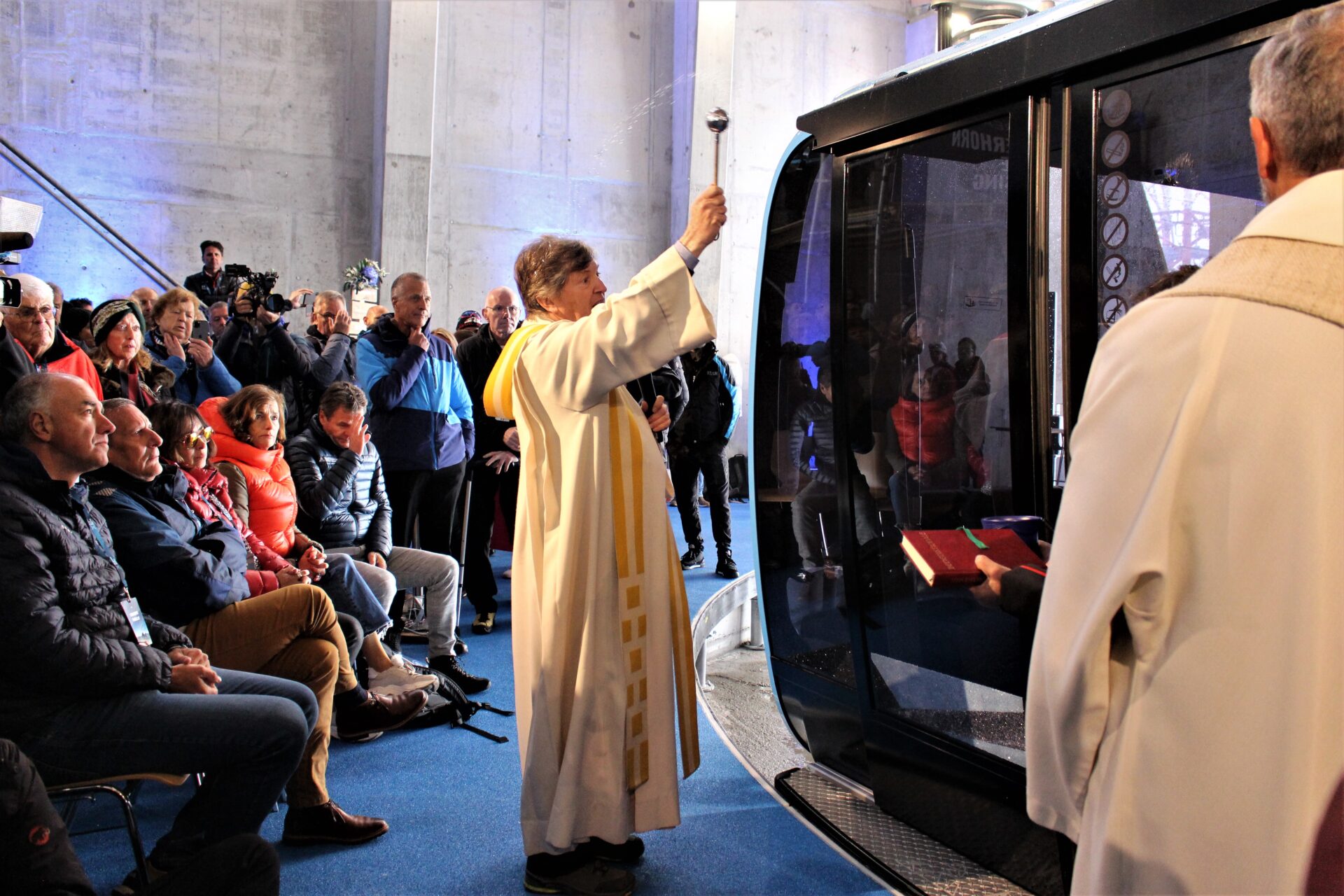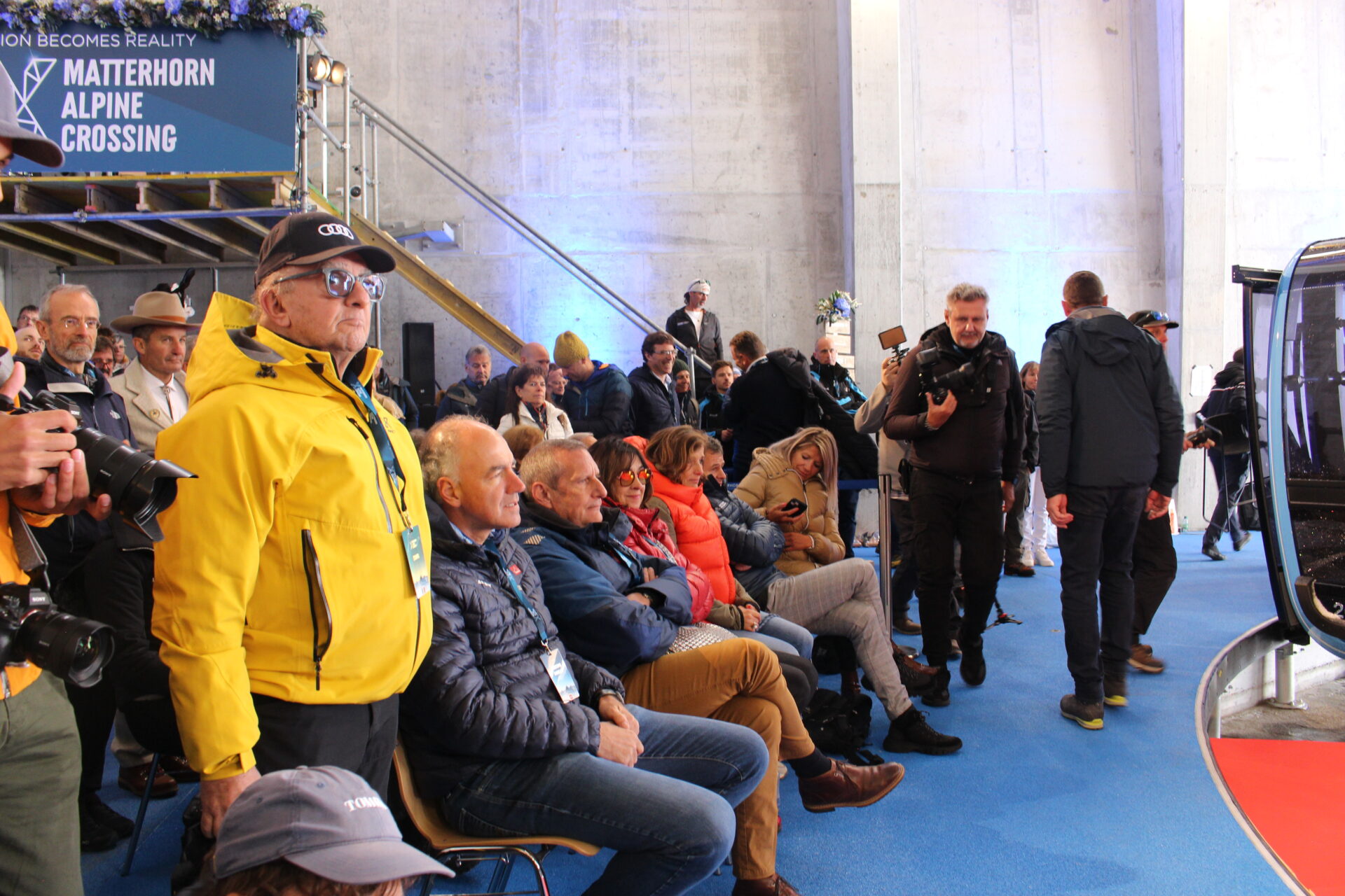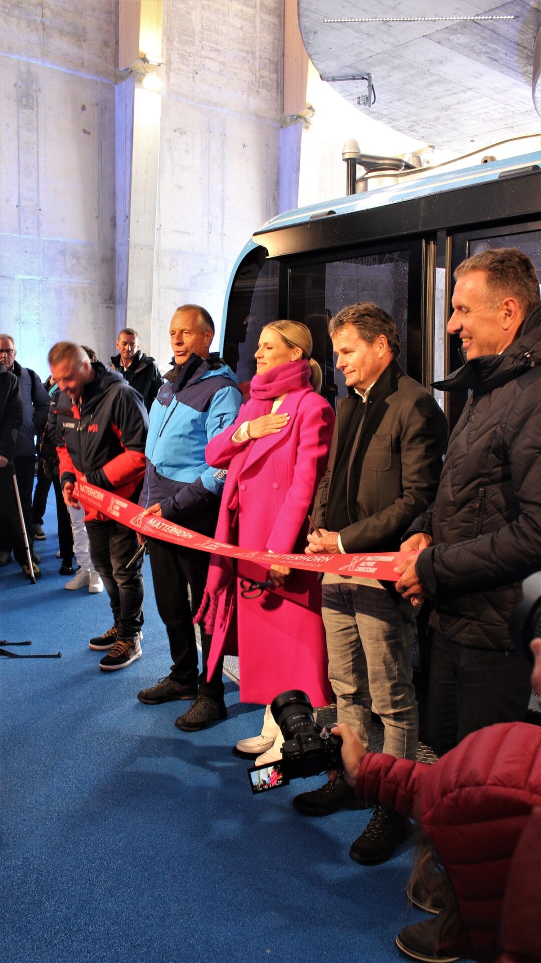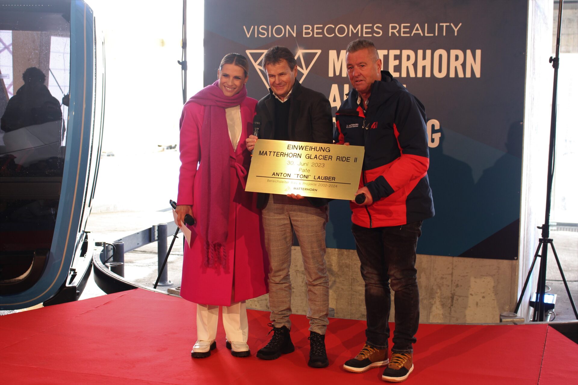 Nel corso della cerimonia di inaugurazione, moderata da Michelle Hunziker, sono intervenuti gli appartenenti al consiglio di amministrazione dell’impresa nonché diversi esponenti politici. In questa sede, il presidente della Regione Renzo Testolin ha provveduto a rilanciare il progetto Cime Bianche, una funivia che, nelle intenzioni dei suoi promotori, avrebbe lo scopo di connettere il Cervino al Monte Rosa: “Vogliamo dimostrare pieno sostegno agli investimenti che verranno sviluppati nei prossimi anni a partire dalla 3s, sulla quale il presidente della Cervino Spa Federico Maquignaz e i suoi collaboratori stanno già lavorando con tutto il sostegno della Valle d’Aosta e dell’Italia per continuare in questa direzione e creare il più grosso comprensorio d’Europa”.
