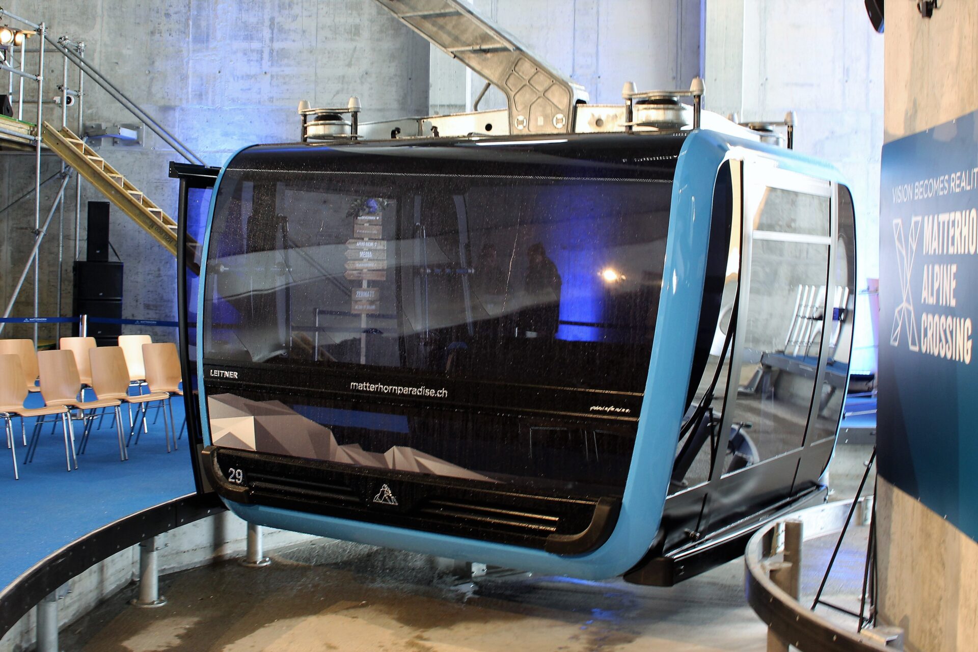 La costruzione dell’impianto è iniziata nel 2018 anche se, come ricordato da Michelle Hunziker, l’idea alla base della funivia ha avuto origine alla fine degli anni ’30. Secondo una stima di Franz Julen, presidente di Zermatt Bergbahnen Funivie, i lavori di realizzazione, sono costati attorno ai 65 milioni di franchi svizzeri.