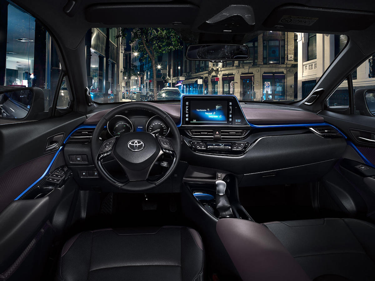 Anche gli interni sono piacevolmente scolpiti, con la consolle centrale asimmetrica e esteticamente gradevole. I sedili sono sagomati e avvolgono gli occupanti. Tutta la vettura, insomma, dà la sensazione di movimento. La guida è sicura e serena, agile in città, con uno sprazzo di sportività dato dall'assetto ribassato: in curva la stabilità è assicurata, grazie anche ad uno sterzo molto preciso. Frutto dell'utilizzo della piattaforma modulare Toyota New Global Architecture.