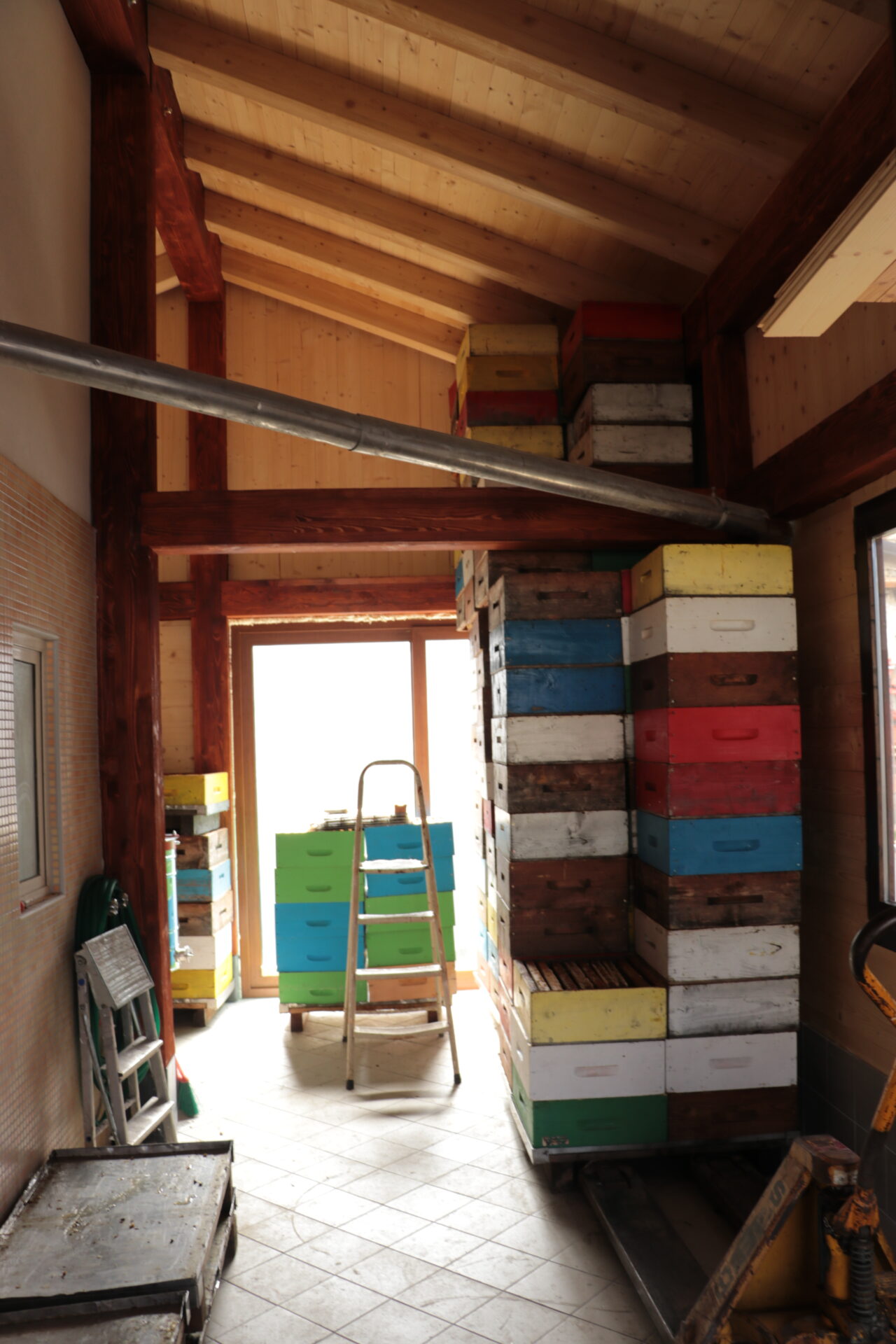 La capacità di aggiornarsi costantemente e di cambiare metodi e strumenti è una delle caratteristiche che contribuiscono al dell’azienda. Infatti, come racconta Monica, “mio papà è un po’ un inventore, lui continua a cercare nuovi modi di fare le cose. Visto che siamo proprio un’azienda piccolina, qui noi andiamo avanti soprattutto grazie alla sua inventiva che ci facilita la vita”. I Merivot continuano ad innovare, soprattutto per necessità, ma con successo, gli strumenti utilizzati all’interno dell’azienda. Un esempio è un particolare tipo di bancale per le arnie che, incastrandosi sul muletto, permette di non fare fatica nel sollevarle. C’è poi anche la struttura del laboratorio di smielatura, nel quale sono stati montati diversi tubi e sistemi di leve per far scorrere il miele direttamente nei contenitori della maturazione.