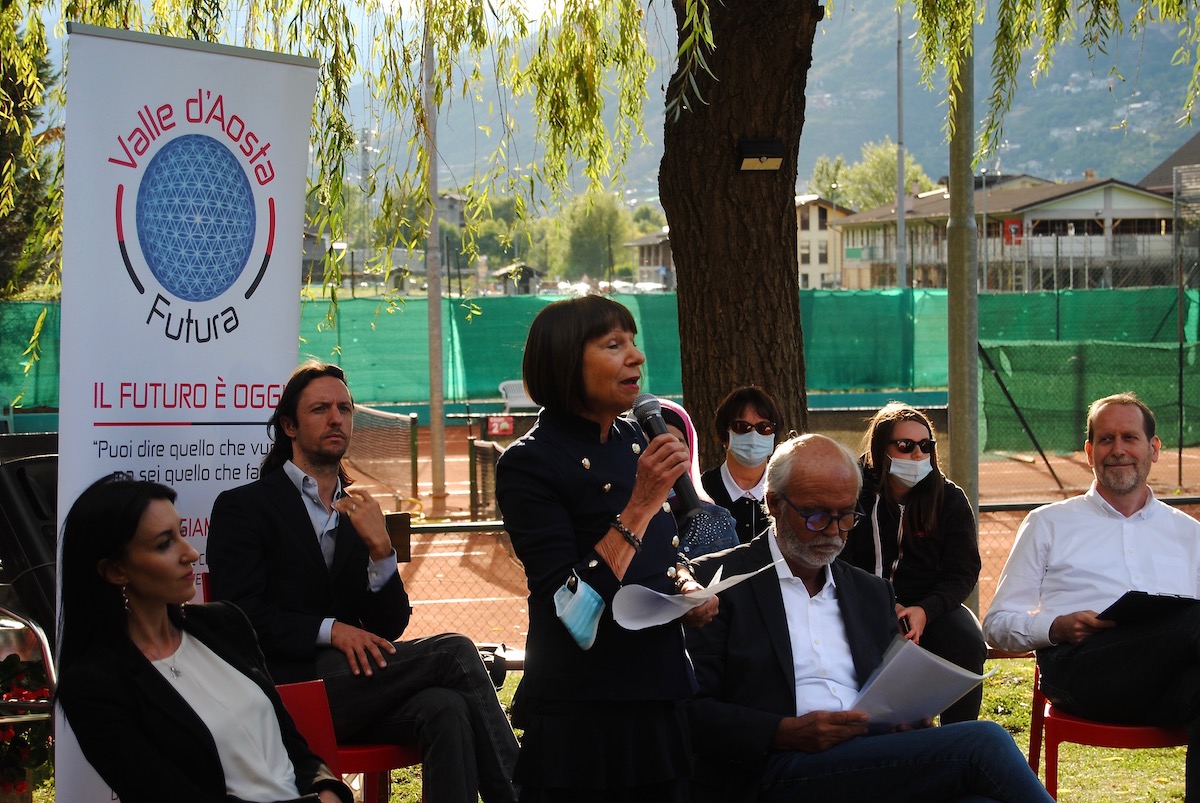 Accanto a sé Artari, candidato nella lista, ha un gruppo eterogeneo o, per dirlo con le parole di Adriana Viérin, che non è tra i candidati e che introduce la presentazione della lista, “nessun professionista della politica ma persone con una reale competenza nei propri campi e che vogliono lavorare concretamente per i cittadini. Un progetto che ha debuttato il 17 giugno, per il desiderio di andare al di là degli schemi e di cambiare i paradigmi della politica”.